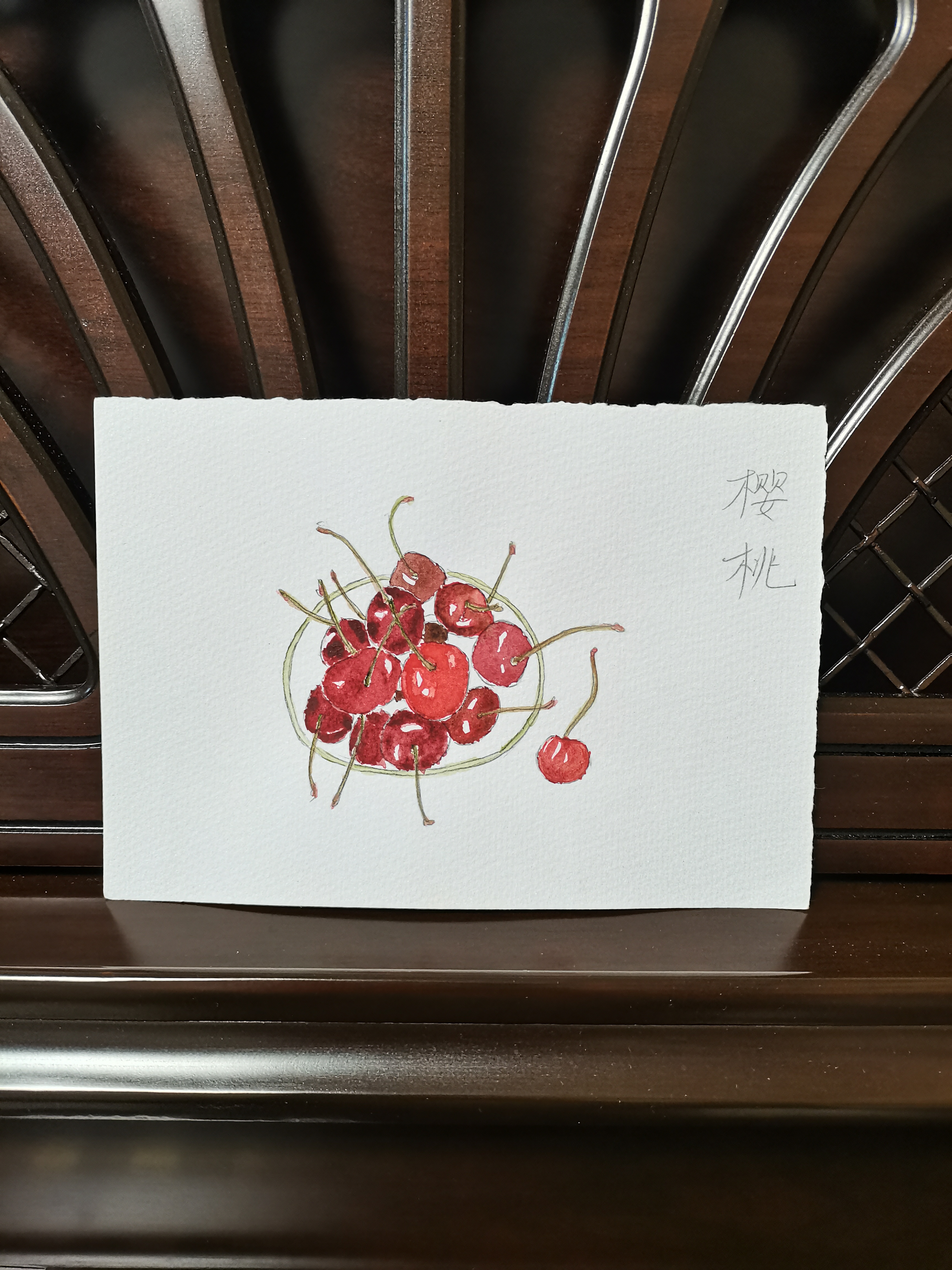 临摹了樱桃。尝试画多颗水果是很有趣的。