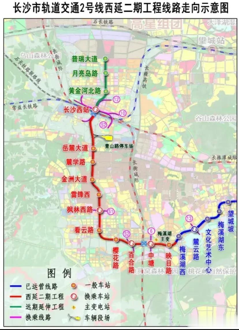 长沙地铁2号线西延线二期段初步站名