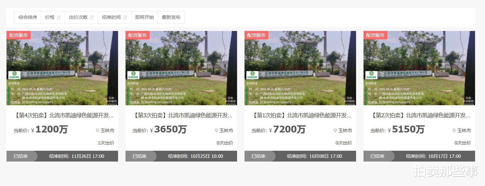 此次北流市凯迪绿色能源开发有限公司拍卖,已经是第四次拍卖,此前进行的三次拍卖都流拍了,其中第一次拍卖的时候,起拍价高达7200万元,第二次和第三次拍卖的起拍价分别是5150万元和3650万元,但是均没有人报名竞拍而流拍了。而第四次拍卖的最终成交价相比第一次拍卖的流拍价,少了6000万元。