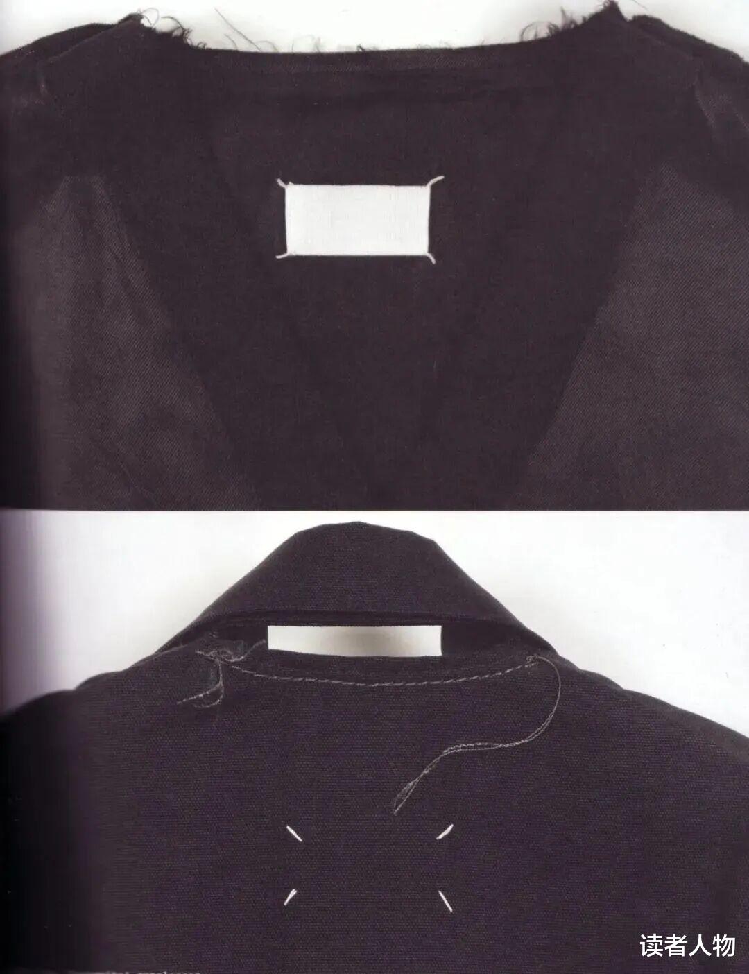 马吉拉呢?他把logo缝在衣服内侧,就是一块白布上用四根白线缝了一下,看起来像是没拆干净的线头。