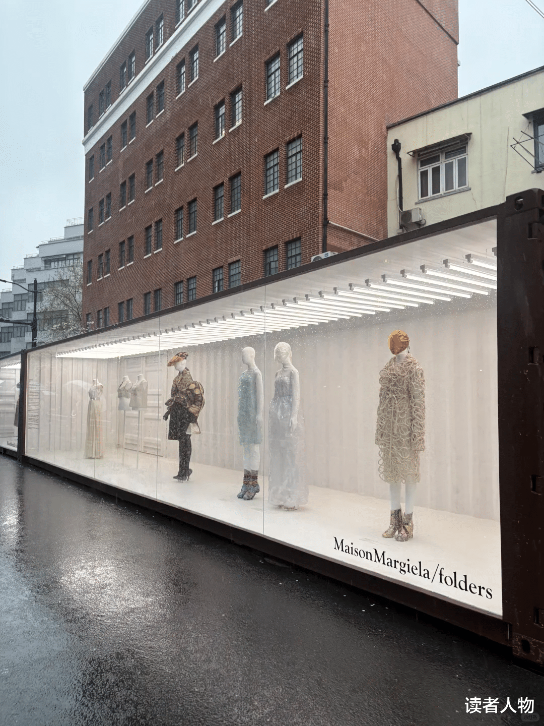 不过有意思的是,当马吉拉把秀场服装从T台上搬到路边集装箱里展示,大家隔着玻璃看衣服、不看头套的时候,人们开始发出“原来衣服是真的好看”这样的感叹。