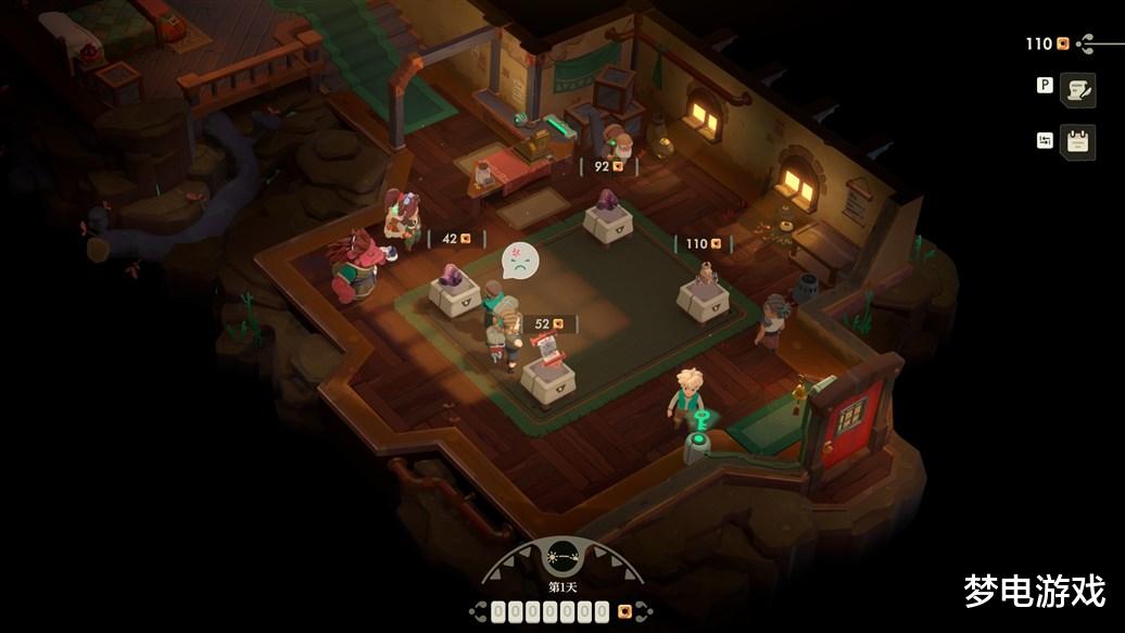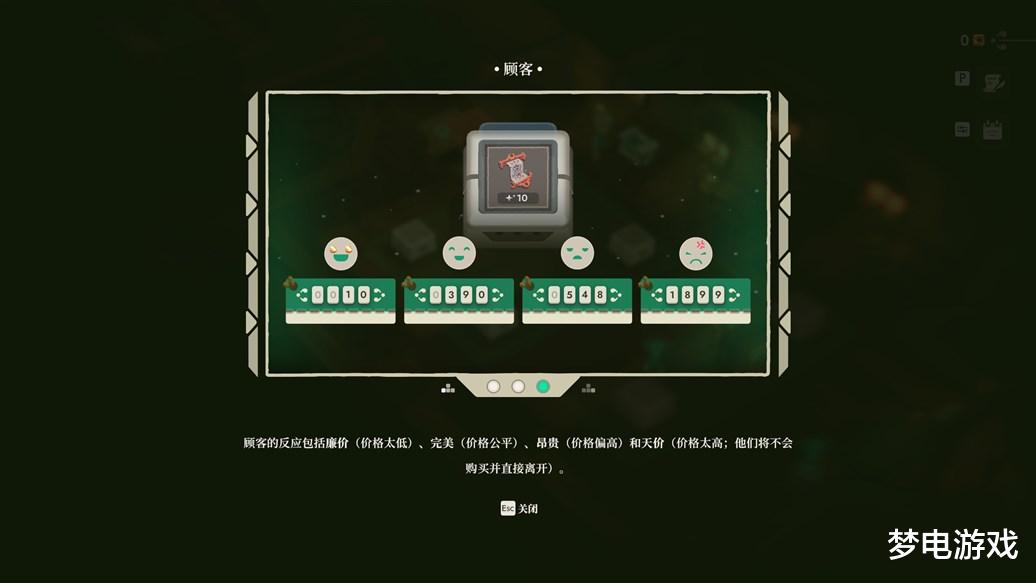 模拟经营方面,除去店铺画面的升级,倒是和前作玩法差不多。下地牢收集的遗物,最初玩家不能直观看到遗物的具体价值,只能看到稀有度和附加价值的多少,然后在上架售卖时就要凭感觉定价。游戏中的顾客看到价格后会有四种表情,分别是“捡到漏了、挺满意的、略贵但还能接受、这么贵去抢啊”类似的意思,然后玩家就要根据顾客的表情来修改定价,直到摸出合适的价格。