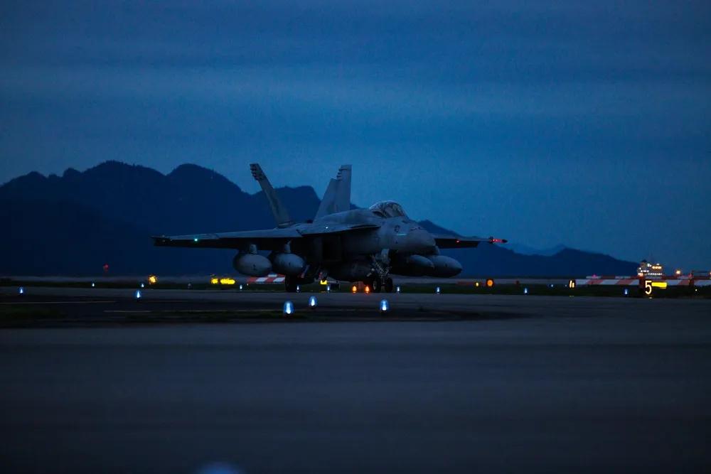 一架隶属于第147攻击战斗机中队(VFA 147)、第5航空联队(CVW 5)、第5航母打击群的美国海军F-35C闪电II战斗机,于2025年9月22日在日本岩国海军陆战队航空站进行航线滑行,进行实地航母着舰训练的触地-起飞训练(Touch-and-Go)。FCLP是飞行员资格和熟练度所需的飞行训练,先于航母着舰操作进行,确保在支持美国印太地区区域安全与稳定的任务中保持作战准备。