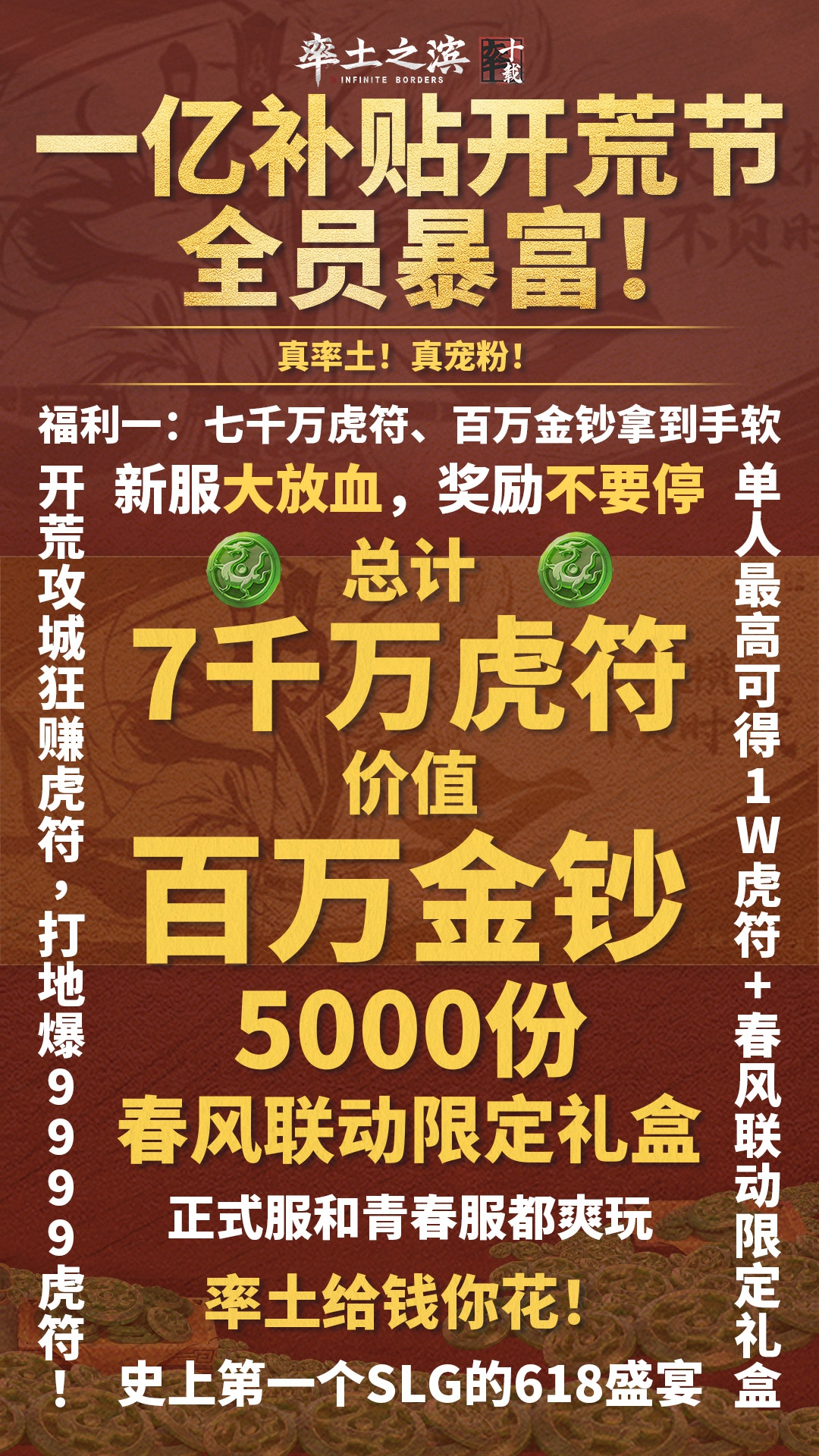 与其 618 在电商平台算数学题,不如来这游戏新服开荒:既能体验攻城略地的爽感,还能白拿官方送的虎符和道具,这种 “边玩边赚” 的好事,错过真的亏大了!