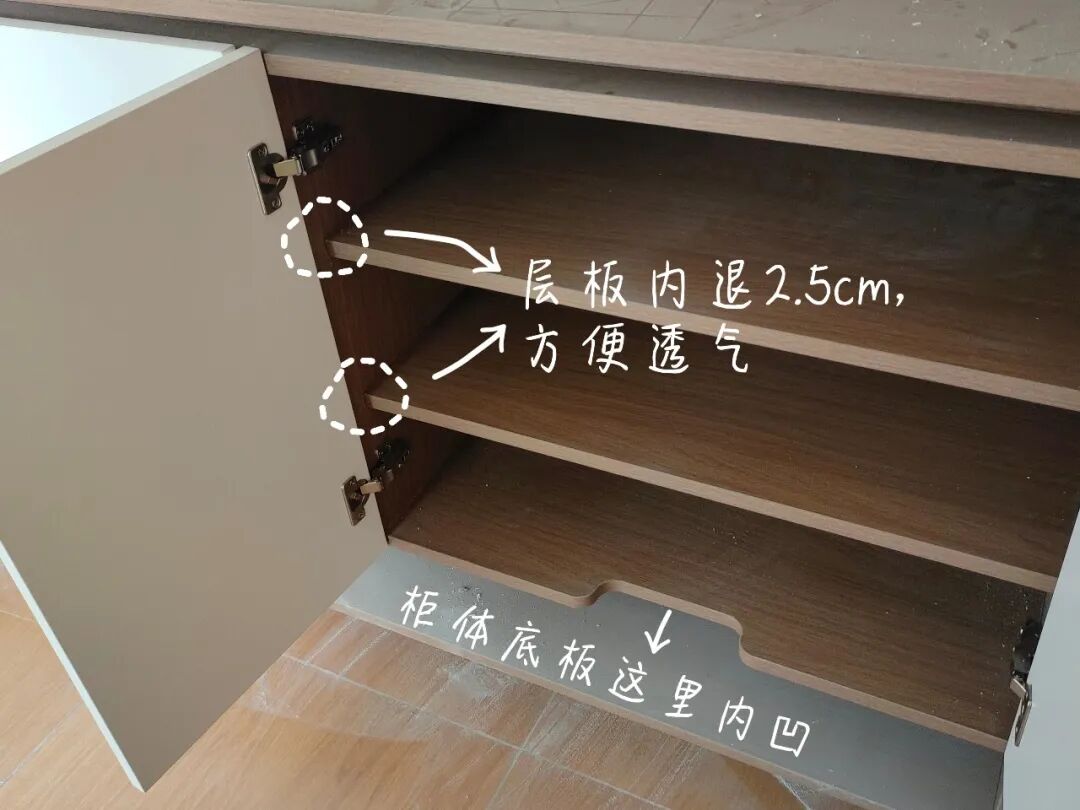 年轻人的思路是,层板内退2.5公分,帮助透气。
