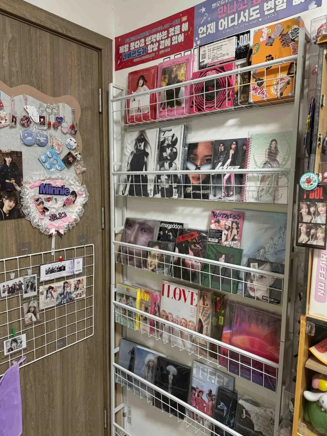 网友@小妮-查7,是直接在网上买了一个靠墙窄款书架,装在门后,放书本唱片专辑啥的。