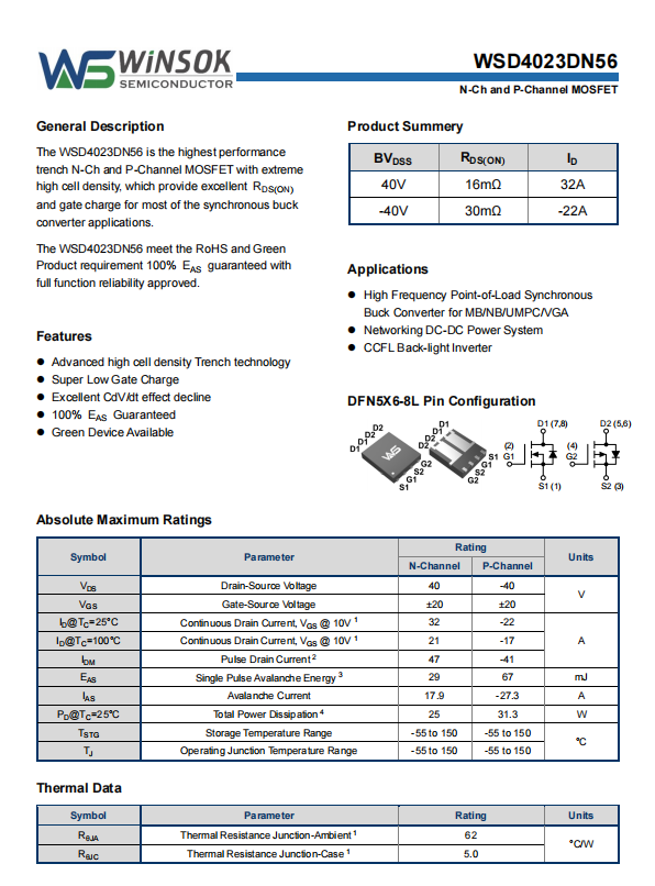 随着“零重力”座椅快速下沉至15万元主流车型,一套座椅需同时驱动加热垫、通风风机、腰托气泵、按摩气阀等多路负载,峰值电流超30 A,对功率器件提出“高集成、低损耗、高瞬态”三重挑战。微硕WINSOK推出的WSD4023DN56双芯MOSFET(N沟40 V 16 mΩ 32 A + P沟-40 V 30 mΩ -22 A),以DFN5×6-8L单封装实现半桥,一颗器件替代两颗DPAK,助力座椅模组减重30 %、电源效率提升6 %,成为主机厂布局“多路集成电源管理”的理想功率级方案。