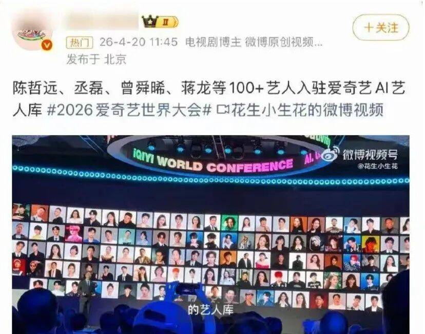 具体来说,爱奇艺声称近期发布了“AI艺人库”计划,并称已有100多名艺人入驻。围绕 AI 艺人落地应用、智能内容创作、虚拟偶像替代真人等方向,平台输出大量超前且激进的行业观点,试图塑造科技转型标签,快速抢占 AI 文旅、数字内容赛道舆论高地。