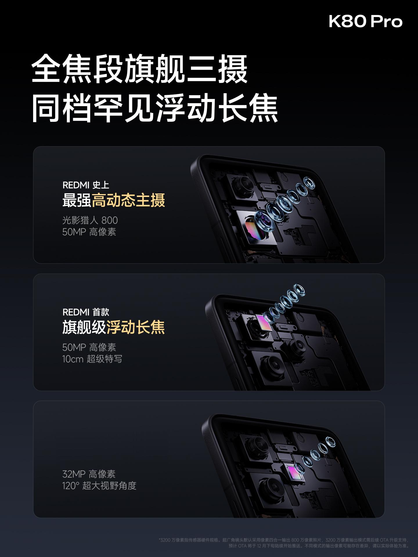 第二个地方就是红米K80 Pro的影像体验更好,主摄倒是差不多,都是光影猎人800,但在副摄上面红米K80 Pro采用32MP超广角+50MP直立长焦(三星JN5,1/2.75",2.5X,OIS,微距),红米K90则是8MP超广角+50MP直立长焦(OV50M, 1/2.88", 2.5X)。