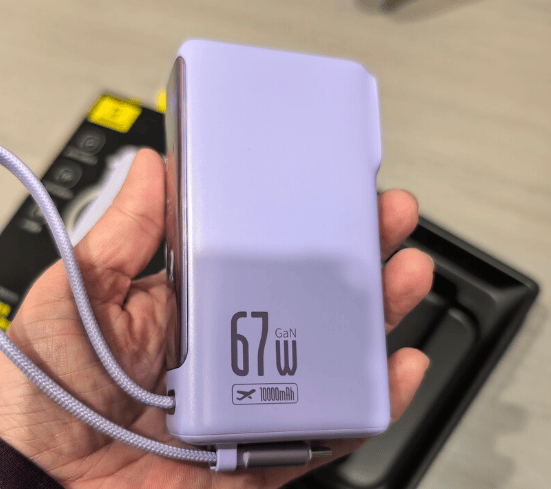 这款充电宝的主流功率为67W,可以为笔记本电脑提供一定的电量支持,还搭配了35W的苹果同厂芯片,为iPhone手机充电的速度还是比较快的。但需要注意这款充电宝在多设备充电的时候,功率会有所分配,充电的效率没有的单设备充电快。在容量上,这款搭配了10000mAh的锂离子电池,基本上能满足一天的电量使用需求,但是如果想要为笔记本提供长时间供电的话,这个容量的充电宝可能存在续航不足的情况。不过值得一提的是,它自带Lightning+Type-c双数据线,并且机身上还有USB-C和USB-A,能够满足不同设备的充电接口需求,使用的时候还是比较方便的。