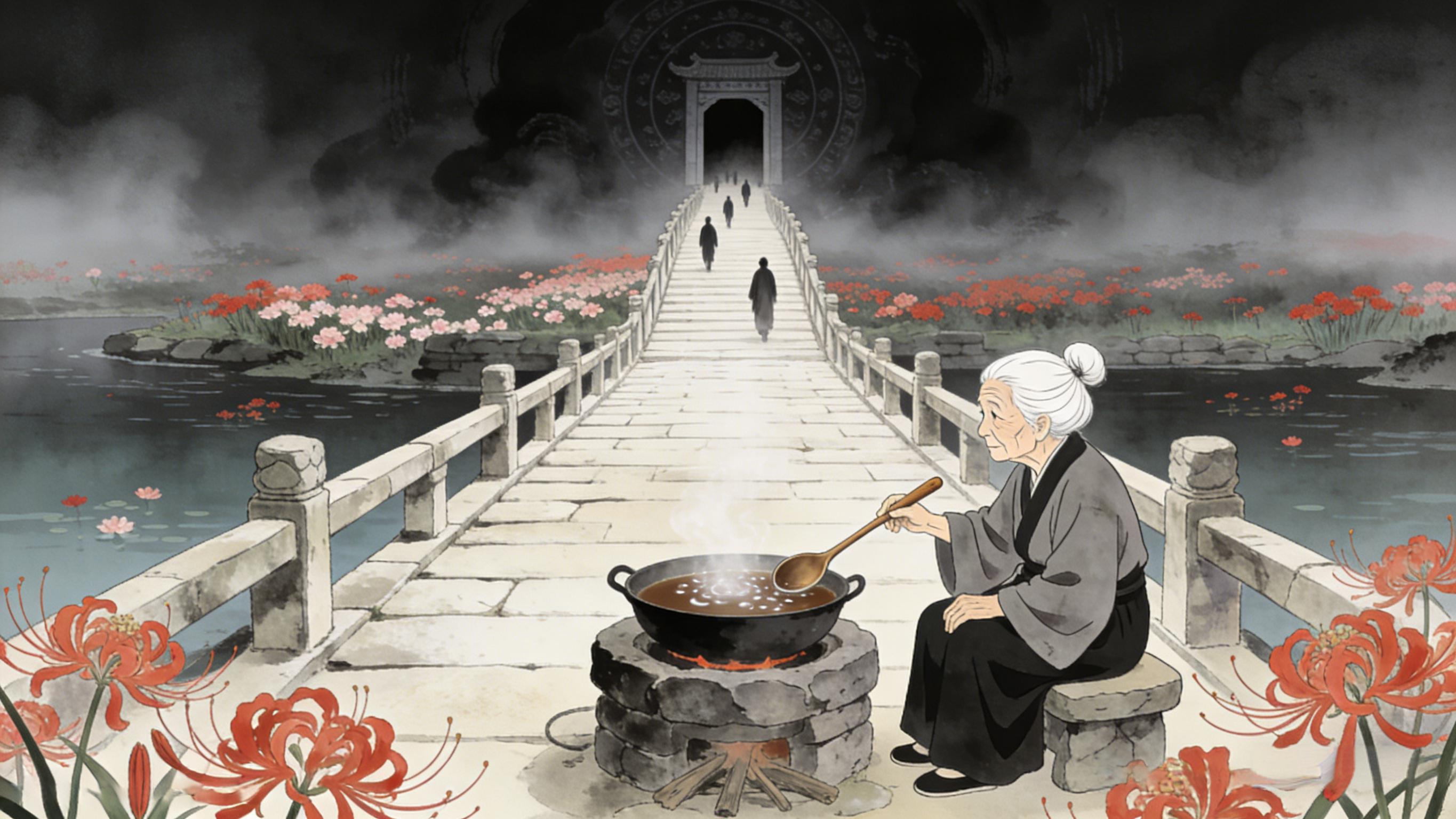 老辈人常说,黄泉路上有座奈何桥,桥边坐着个孟婆,守着一锅熬了千百年的汤。