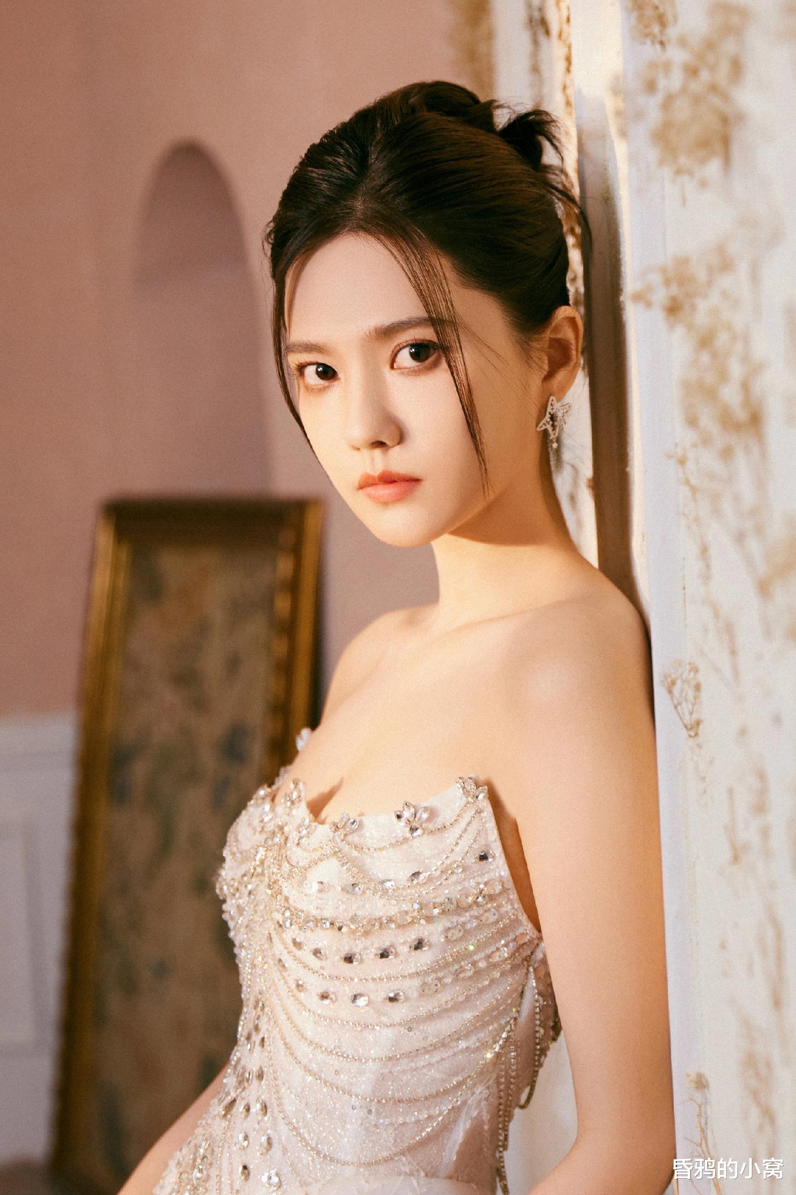 在《国色芳华》中,她珠翠满头的高髻与华丽花钿妆容,被赞 “从仕女图中走出”,这种 “国泰民安脸” 在中老年观众中极具亲和力。