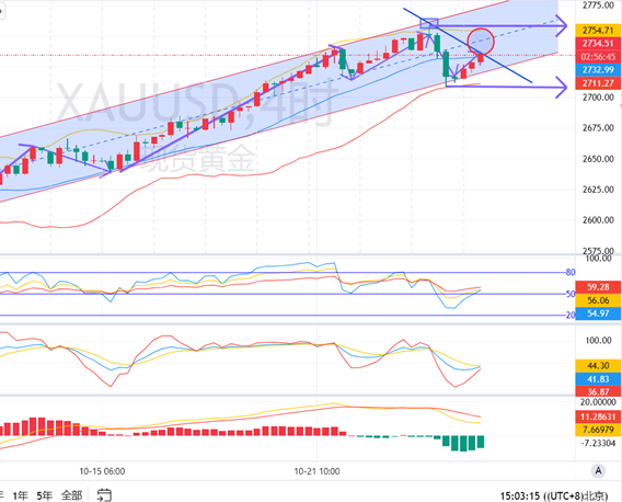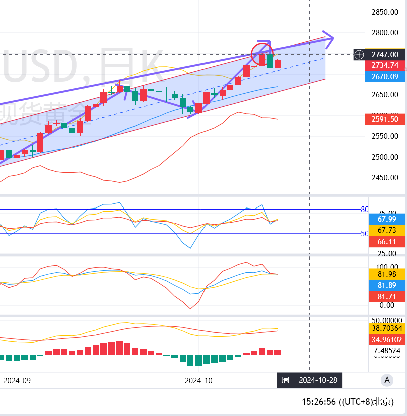 回顾昨日,黄金白盘高位震荡,且美盘前后冲高至2758后开启回落,并且是较为宽幅区间的下跌,最低至2708附近,近50美金的回落空间,一波流操作让人始料未及。那么,今天黄金趋势如何?