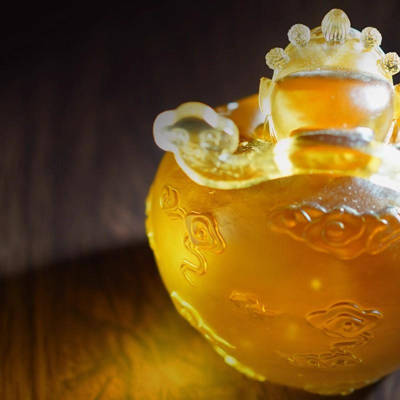 古法琉璃,亦称琉璃,其制作工艺极为复杂,需经过十多道手工工艺的精修细磨,整个过程纯为手工制作 。在高温 1000℃以上的火炉上将水晶琉璃母石熔化后自然凝聚成琉璃。其精品制作相当费时,有的制作过程长达十几二十天,且各个环节的把握相当困难,火候的把握更是一半靠技艺一半凭运气,仅出炉一项,成品率就只有 70%。更关键的是,古法琉璃不可回收,一旦出现问题,所有努力便付诸东流,这也使得世上没有两款一模一样的琉璃,每一件都是独一无二的艺术珍品。