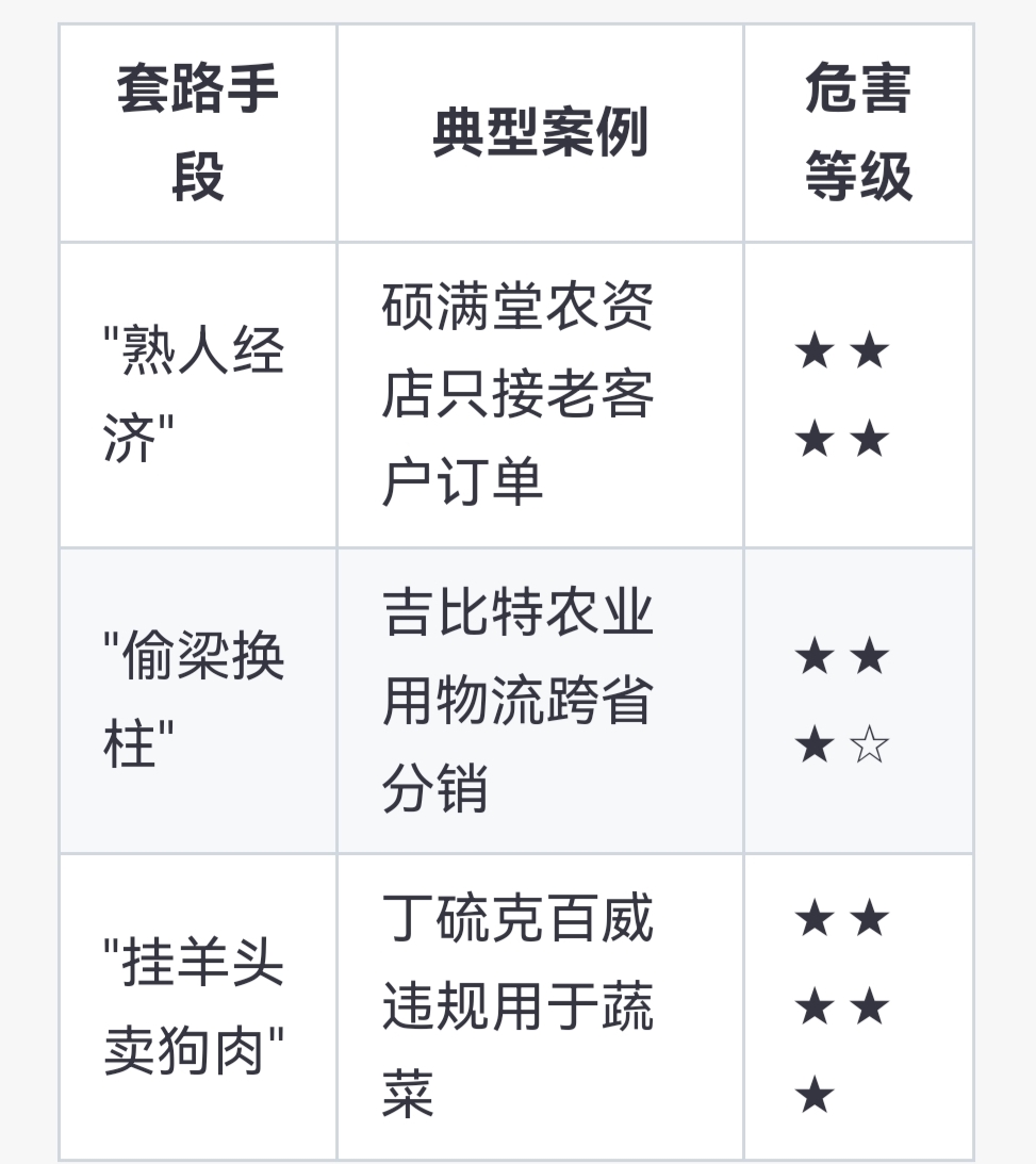 • 只卖熟人、偷换包装,甲拌磷更换为"土壤改良剂"包装;