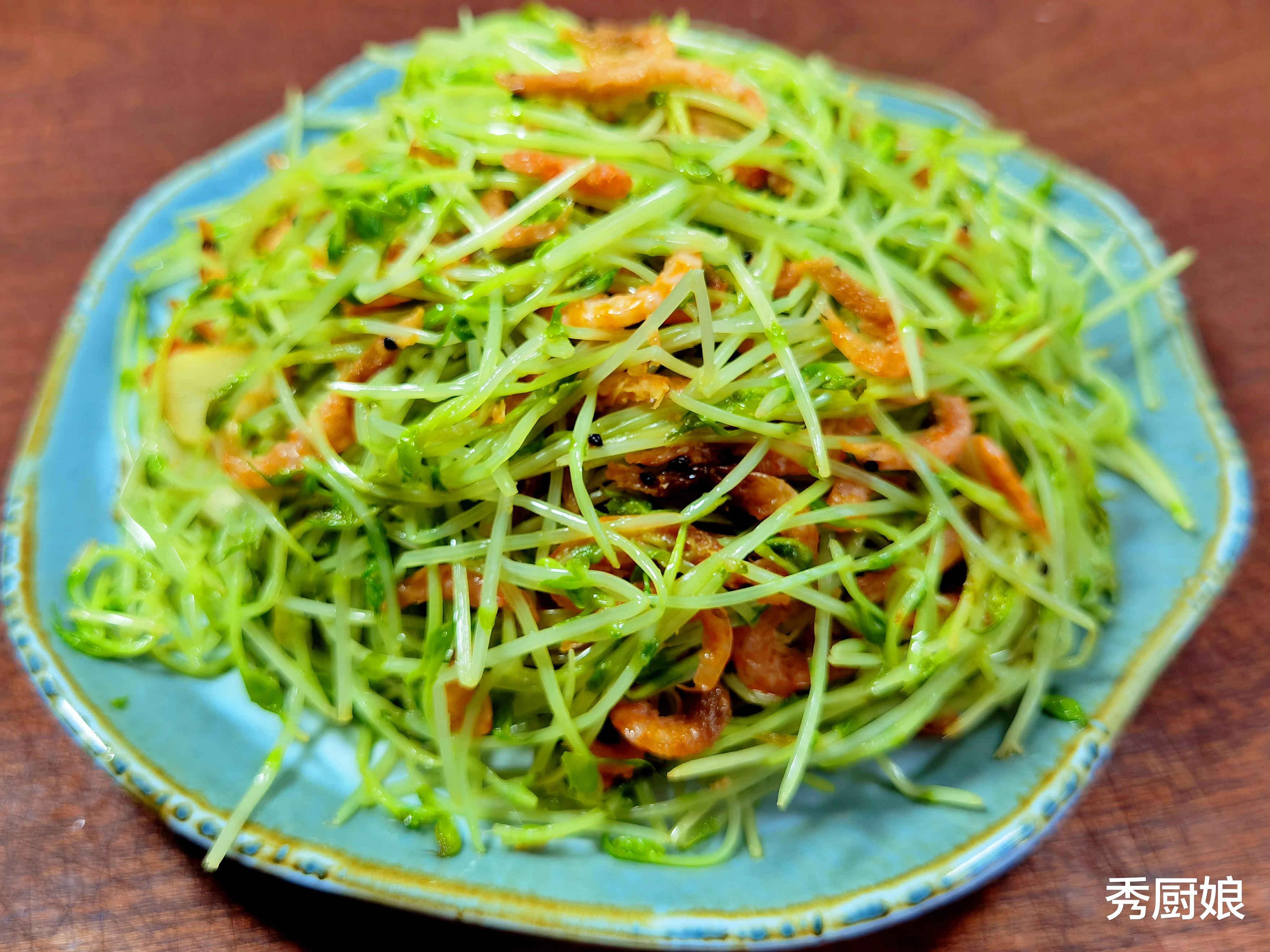 这做法简单到不行,但味道绝对惊艳。虾皮是“天然味精”,和清甜的豌豆苗一搭,那叫一个绝配。