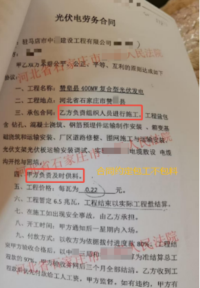 一、光伏项目纯劳务分包,合法债权转让开启工程款追索2022 年 6 月,驻马店市中某建设工程有限公司从中建某局相关建设公司承接赞某县 400MW 复合型光伏发电项目部分劳务工程,随后将集电线路混凝土劳务、光伏电劳务等纯劳务作业分包给付某彬(实际施工人),双方签订包工不包料的纯劳务分包合同,涉案款项均为农民工劳务报酬。