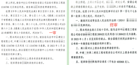 二、四级审理金额存在差异,证据采信与事实认定存有分歧该案历经四级审理,判决金额出现较大波动。核心争议在于对证据的采纳与事实认定存在不同认识。二审判决对三方签字确认的核心结算证据的证明力认定,与对另一方当事人所提供证据的证明力认定,形成了不同判断,导致二审判决结果与一审判决结果存在较大差异。