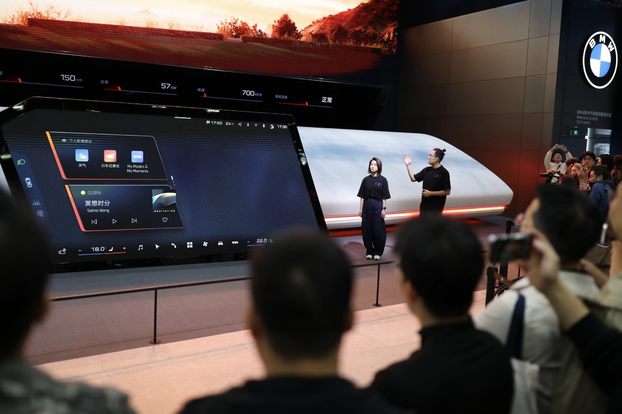 如同“巨幕影院”的BMW新世代超感智能座舱再次来到中国。观众走进“巨幕版”新世代座舱,从驾驶员视角可见四大交互界面——全新3D抬头显示、视平线全景显示、超感中控、超感方向盘按“视觉锥”理念筛选和排布信息,让人车交互更自然、更贴心。由宝马中国研发团队主导的中国专属BMW新世代操作系统X集成诸多本土数字生态、功能和元素。例如,在视平线全景显示上灵活悦动的BAVA形象,以及北京、上海、沈阳和南京地标建筑的卡通版图标都为旅途增添更多趣味;DeepSeek接入BMW个人语音助理,进一步拓展理解和对话的能力边界。高度集成的HUAWEI HiCar也无缝融入,实现鸿蒙系统手机与新世代车机无缝互联、数据实时同步。由BMW定制的高德地图能够在多个座舱界面联动,让驾驶者无须分心便能轻松知晓导航信息。