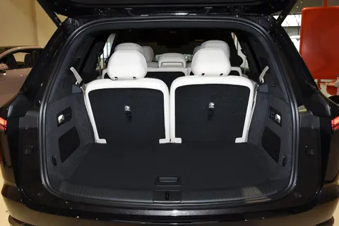 满员 6 人或 7 人时,后备箱依然有 430L 的容积,进深 550mm,能竖着放下 1 个 28 寸登机箱和 1 个 20 寸登机箱。盖板下方还有一个深层下沉空间,相当于额外的储物格,婴儿车、背包等杂物都能放进去,盖上盖板后车内显得很整洁。如果需要更大的储物空间,一键就能放倒第三排座椅,头枕会自动收缩,瞬间变成大四座布局,后备箱容积可扩展至 2276L,用来搬家或者拉大件物品都没问题。再加上超大前备舱,实现 “6 人 10 箱” 的满载出行完全可行。