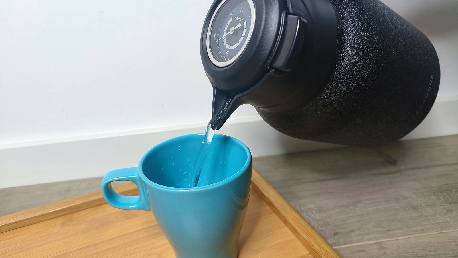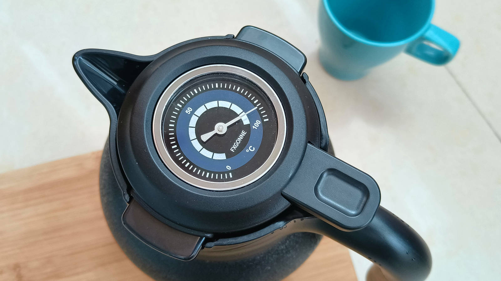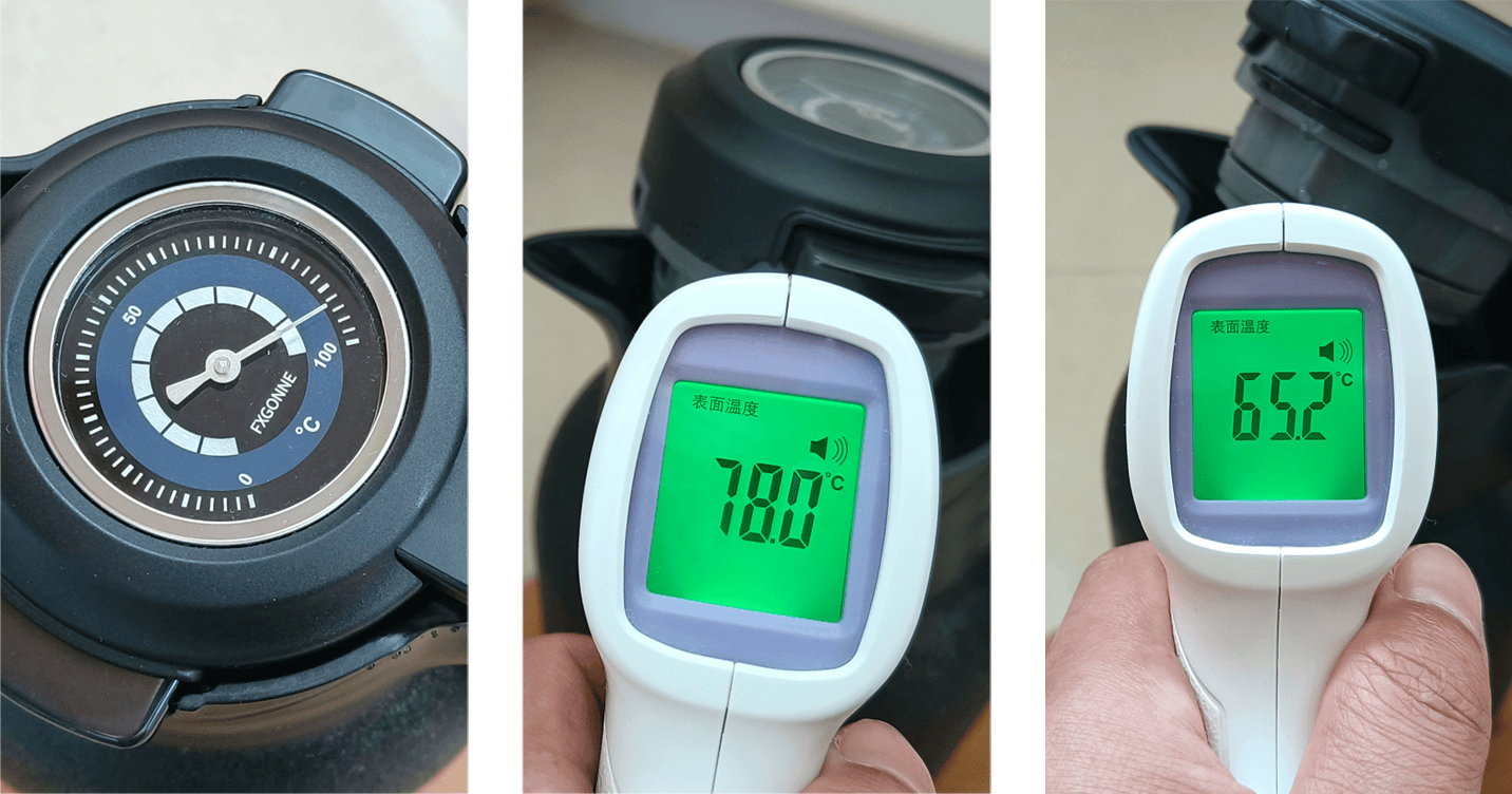 宫菱搭载了食品级机械智显探针,倒入烧开的沸水,壶盖温度显示为 97℃左右,其精准误差值在可接受范围内,平时通过机械显温功能可以实时掌握水温,让的喝水温度变得更直观。