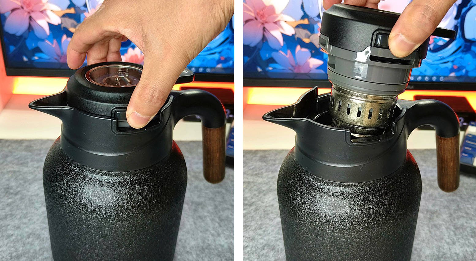 在耐用性方面,宫菱保温壶的外层不锈钢外胆。具备良好的抗冲击性。我们用装满水的保温壶模拟意外跌落,壶身没有丝毫的变形或破损,壶盖的密封性能依旧保持完好,无任何渗漏现象。这种设计让日常使用做到更加省心。