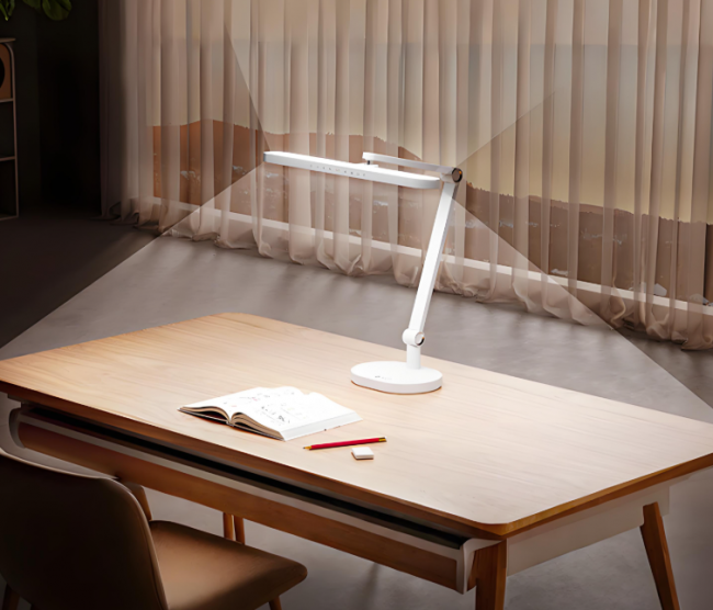 MindDuo的双翼灯头设计辨识度很高,内嵌导光板与遮光结构在一定程度上缓解了直射眩光问题;金属灯臂支持多轴调节,能适配不同桌面布局;智能感光、入座自动亮灯等功能,在日常使用中确实省心。