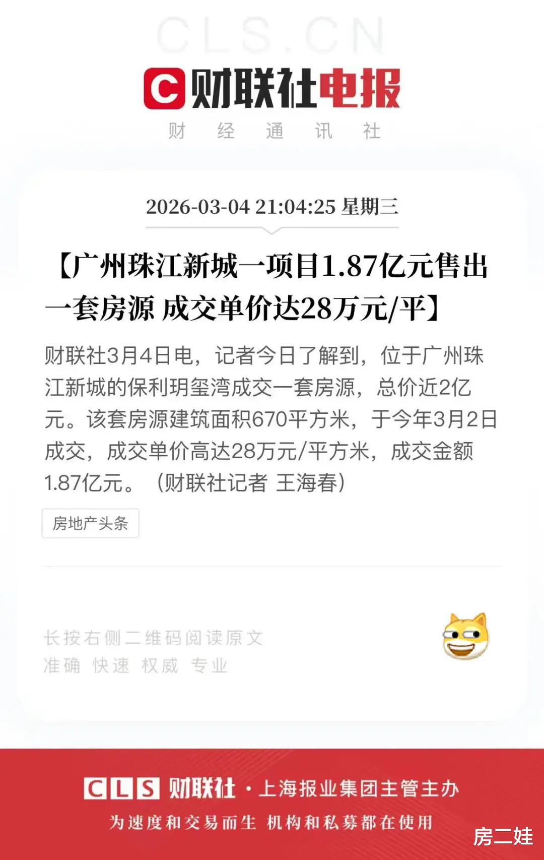 然后,刚刚我又在@广州房产发了一篇文章,爆料广州某豪宅,今天一口气卖了4套,总价7.18亿,其中2套顶复均超2亿!