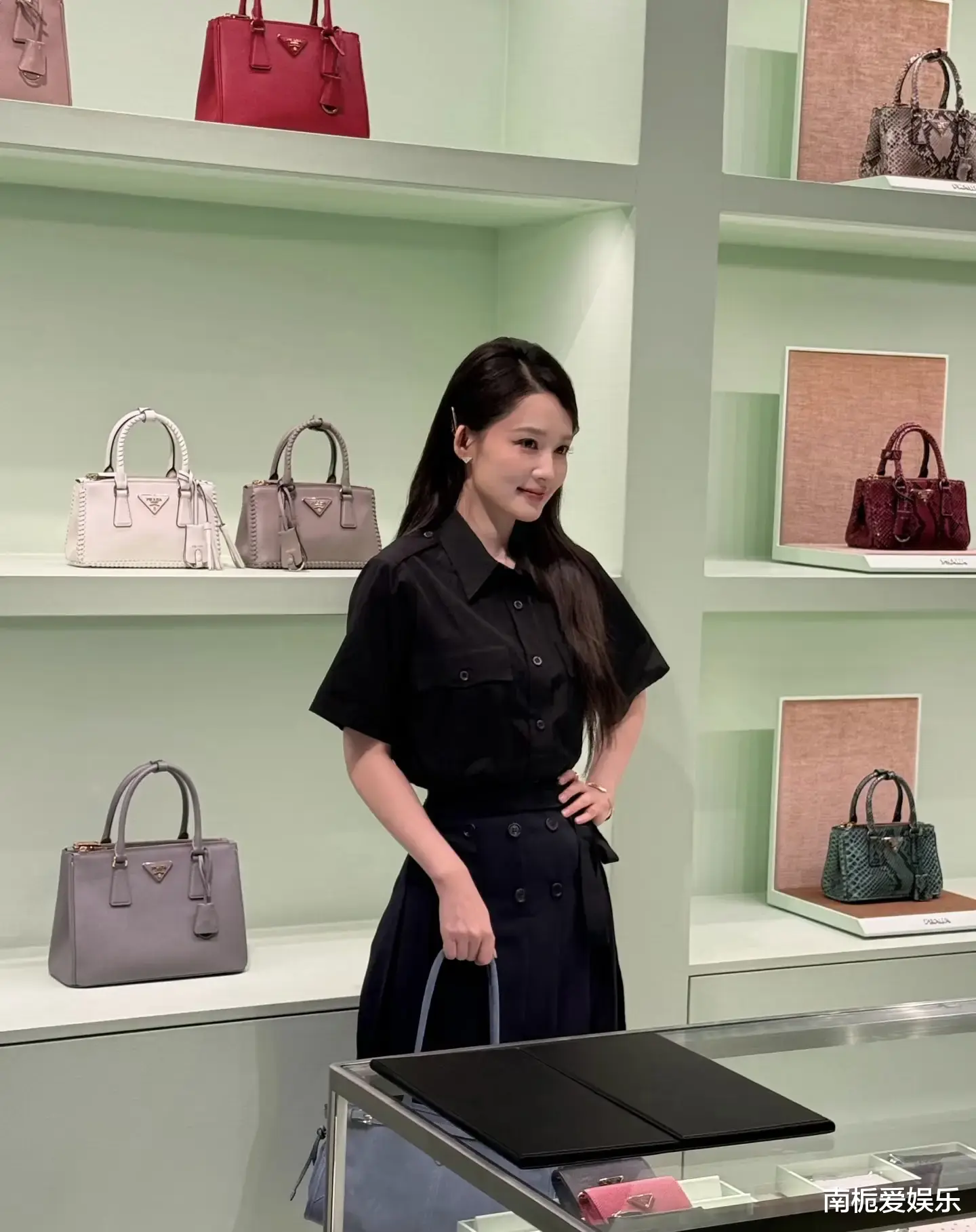 高潮出现在活动生图与直拍视频流出后。清镜头无滤镜直出,李沁面部骨相清晰优越,下颌线锋利如刃,皮肤状态通透自然,毫无修图痕迹。她从容应对密集拍摄,举手投足间尽显松弛与自信。珐琅三角发夹精准呼应Prada经典标识,Eternal Gold系列珠宝点缀腕间指节,低调却极具质感;手拎Bonnie中号皮革手袋,脚踩帆布仿水晶高跟鞋,将优雅与灵动感巧妙平衡,每一帧都堪称时尚大片。
