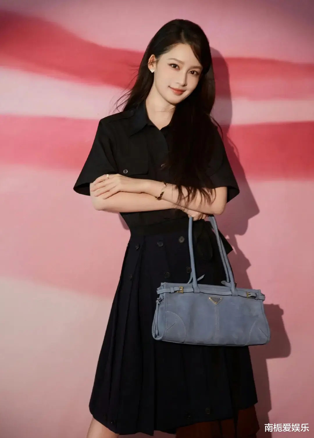 活动当天,李沁外场先以一袭云舞白西装套裙登场,干练飒爽的精英气质已引发热议。然而真正引发关注的,是她转场内场后换上的黑色衬衫搭配撞色褶皱半裙造型。纯黑色调奠定沉稳基调,衬衫利落翻领勾勒出修长颈部线条,半裙独特的褶皱拼接设计在静态中暗藏流动美感,灰白色细节巧妙打破沉闷,被时尚博主称为“教科书级的极简穿搭”。