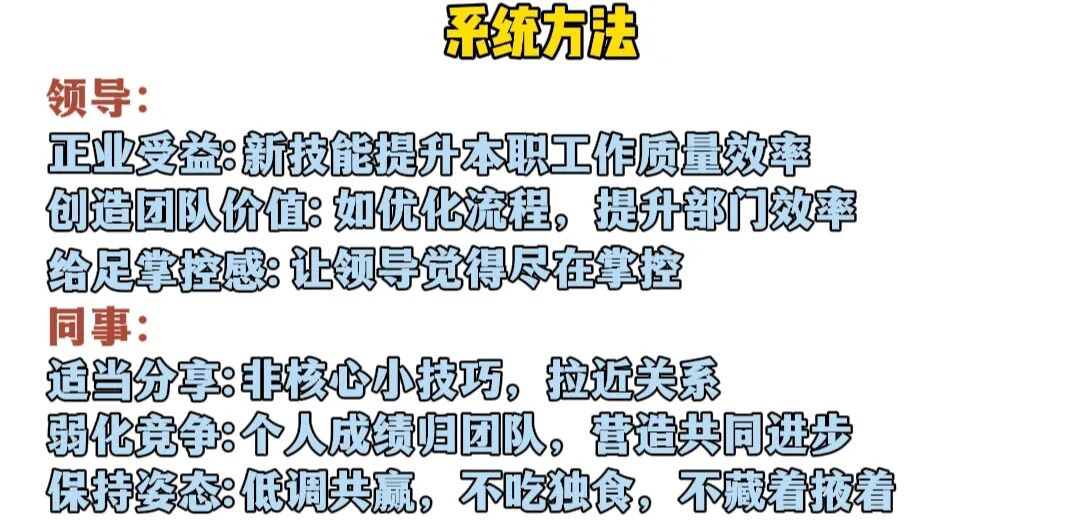 然后分析他们的真实诉求到底是什么?比如妻子表面说"少加班熬夜多陪伴",深层需求是家庭稳定和你的陪伴,怕你健康出问题顶梁柱倒塌,公司领导说本职工作多努力,实际是需要团队业绩稳定且下属可靠,担心你的努力影响这些从而带来业绩或管理上的风险,同事调侃实际是不想被迫走出舒适区,陷入内卷,又或者担心你的积极努力会抬高领导期望,导致上班摸鱼更难了,所以针对这点深度诉求你就要学会抛开表象换位思考。