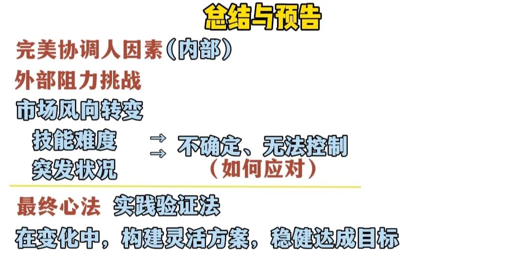 下期我们讲看透本质四大心法的最后一环,也是最关键的一环,实践验证法,它能帮助我们构建一套能够随外部环境变化而灵活调整的行动方案,最终能让我们能在变化中稳健的达成目标。