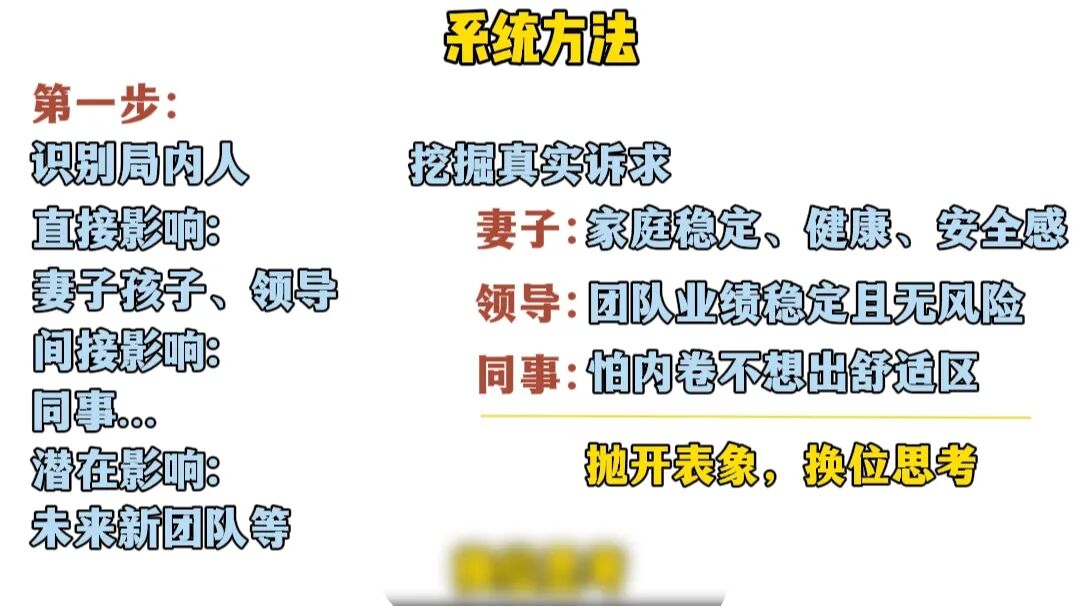 第一步识别出所有局内人,列出来所有会被你的计划影响的人,并挖掘出他们的真实诉求。
