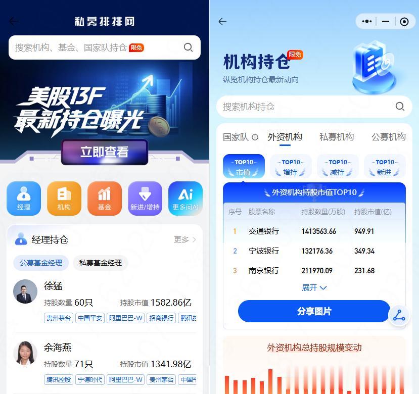 外资公募持仓在哪看?想要查看摩根大通、宏利基金、摩根士丹利、贝莱德、富达基金等外资公募持仓明细,可以用私募排排网推出的大佬持仓功能↓↓↓