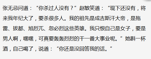 比如,赵敏说过:“杀我亲人,我杀他全家。”