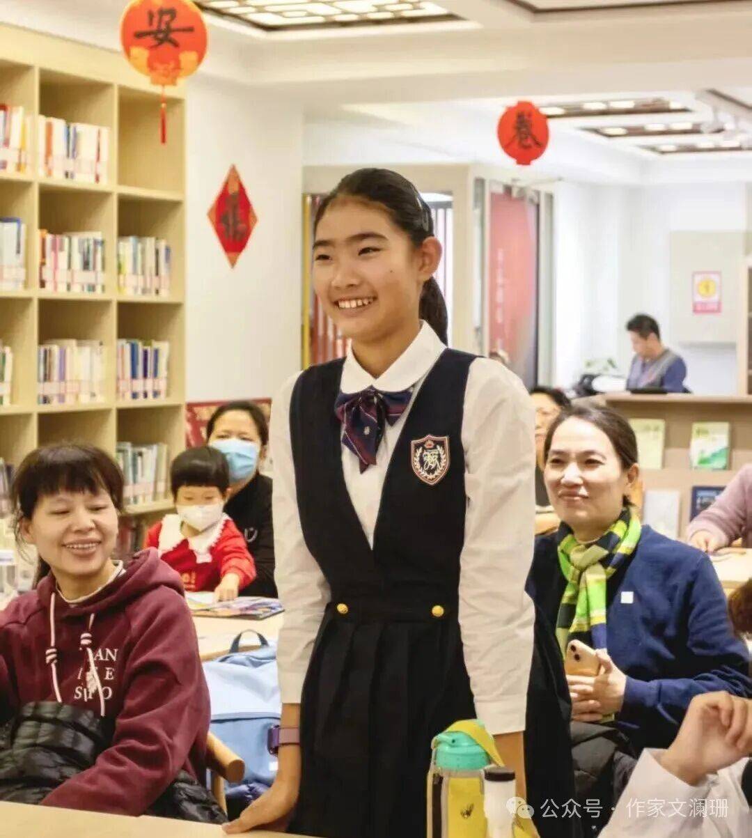 文澜珊热情地向参与活动的少年儿童们赠送了自己亲笔手写的书签和《大话诗词》签名书作为留念。