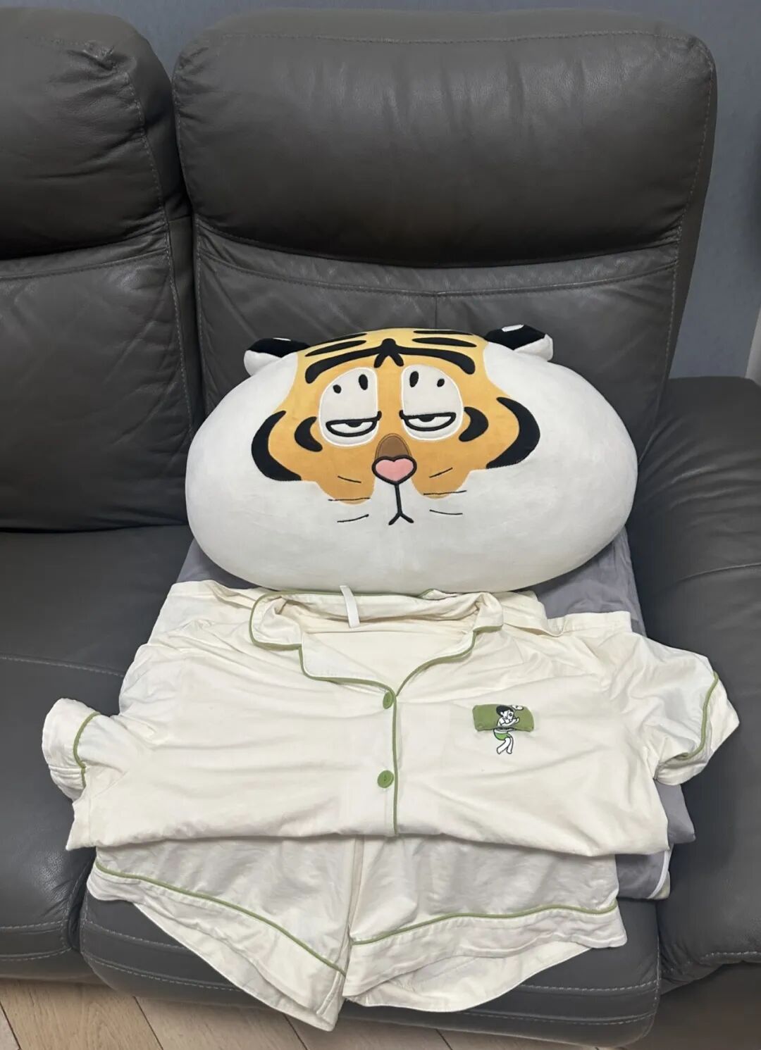 7.让老公叠一下睡衣,结果还多了个抱枕,这个表情是想表达什么吗,哼!