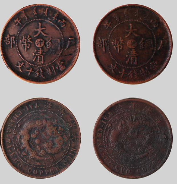细细端详这枚“天价”铜币,仿佛能穿越时空,触摸到那个时代的脉搏。铜币正面,“大清铜币”四个楷书大字端庄肃穆,笔画间透着皇家的威严。中心的那个字,是它身份的象征,代表着它诞生于哪一个造币厂。而背面,那条象征着皇权的蟠龙,则是整枚币的灵魂。龙身矫健,龙鳞片片分明,龙首高昂,双目圆睁,仿佛正欲腾空而去。在龙纹的环绕下,英文“大清帝国铜币”清晰可辨,东西方文化的碰撞与融合,在这方寸之间展现得淋漓尽致。岁月为它披上了一层深沉的包浆,那是时间的印记,也是它身价的证明。