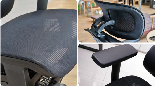 调节能力:扶手能上下调节,部分可小幅前后移动,靠背最大后仰135度,头枕能调高度和角度,调节功能基础,能满足日常办公基本需求;缺点是坐垫深度调节有限或没有,腿长的人坐着可能不够舒适。