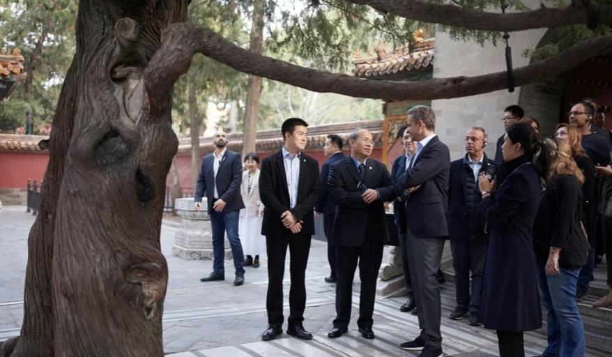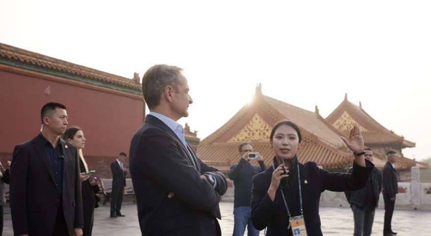 11月2日希腊总理米佐塔基斯抵达北京,并参观了故宫博物院;他出生于1968年,也是55岁的人了,一手插兜一手放在下巴上的姿势帅翻了;一旁的随行女翻译也是穿着黑色衣服,一件长款风衣扎起马尾辫,尽显肤白还貌美。