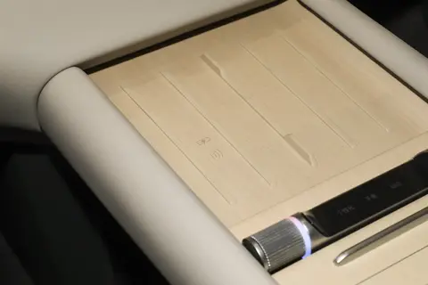 全车配备的多层隔音玻璃与主动降噪技术配合得很好,能有效隔绝外界的胎噪、风噪和路噪,关上车门就能拥有一个静谧的车内环境。再搭配16个扬声器的BOSE音响系统,每一段旅程都能享受到沉浸式的听觉体验。细节配置也很贴心,车载空气净化器、PM2.5过滤装置,再加上带有5种专属香型的负离子香氛系统,让车内空气始终保持清新宜人。2.002㎡的全景自动调光天幕与30色氛围灯的组合,不仅提升了座舱的通透感,还能根据心情切换氛围,为出行增添了不少乐趣。