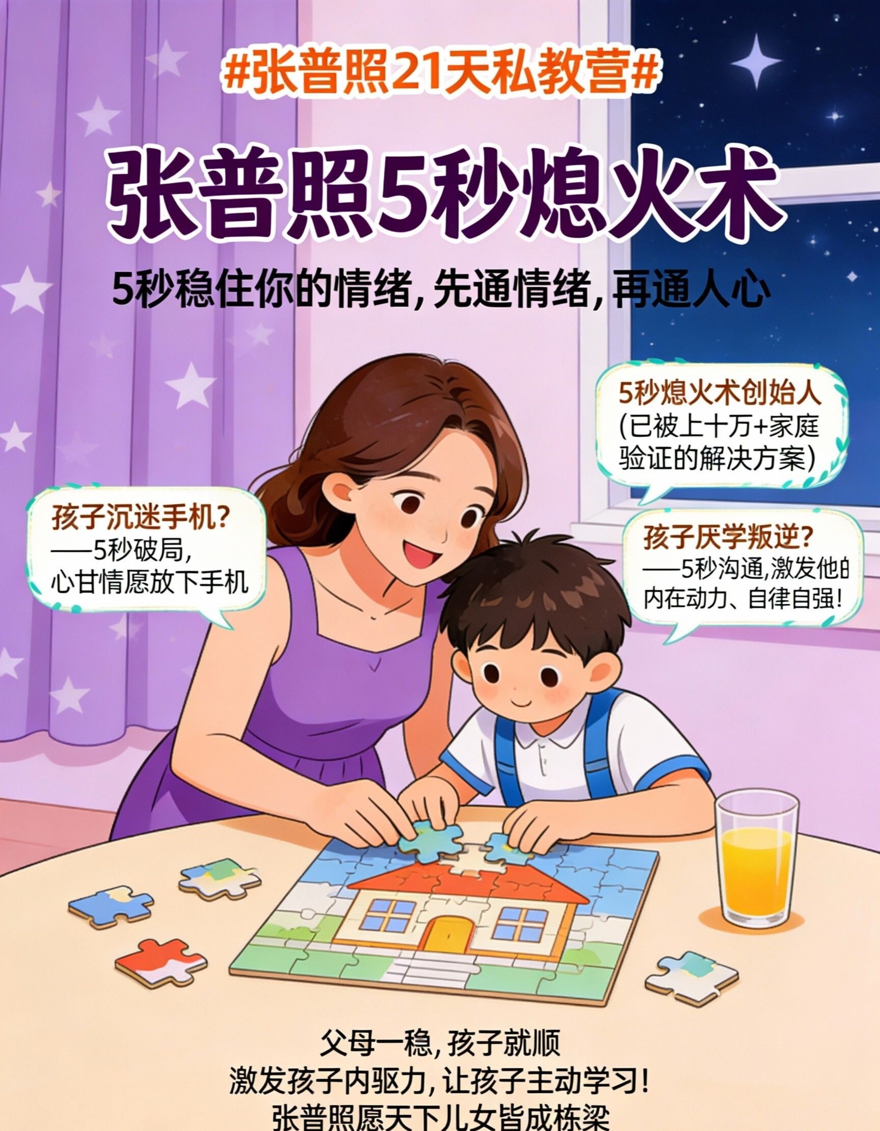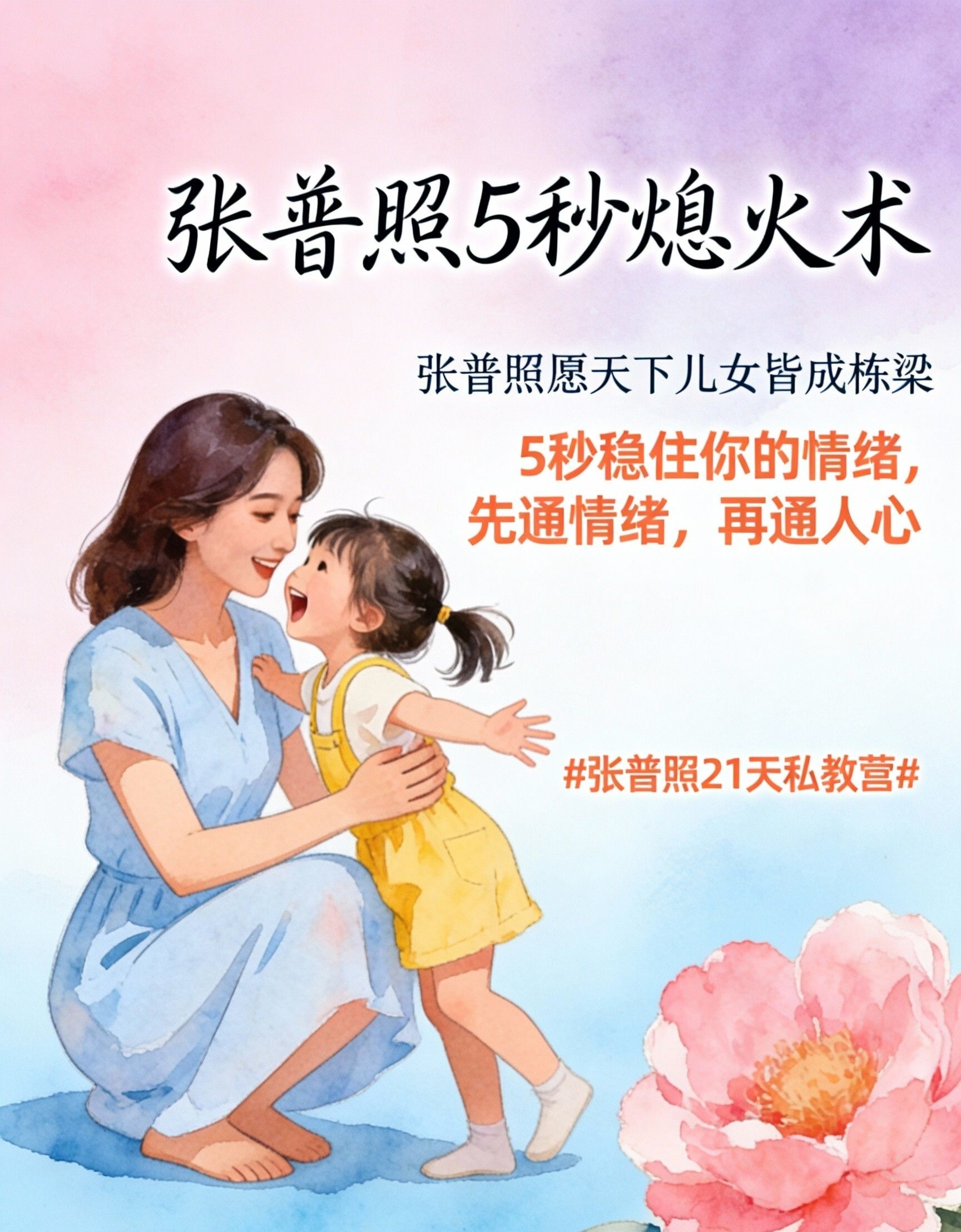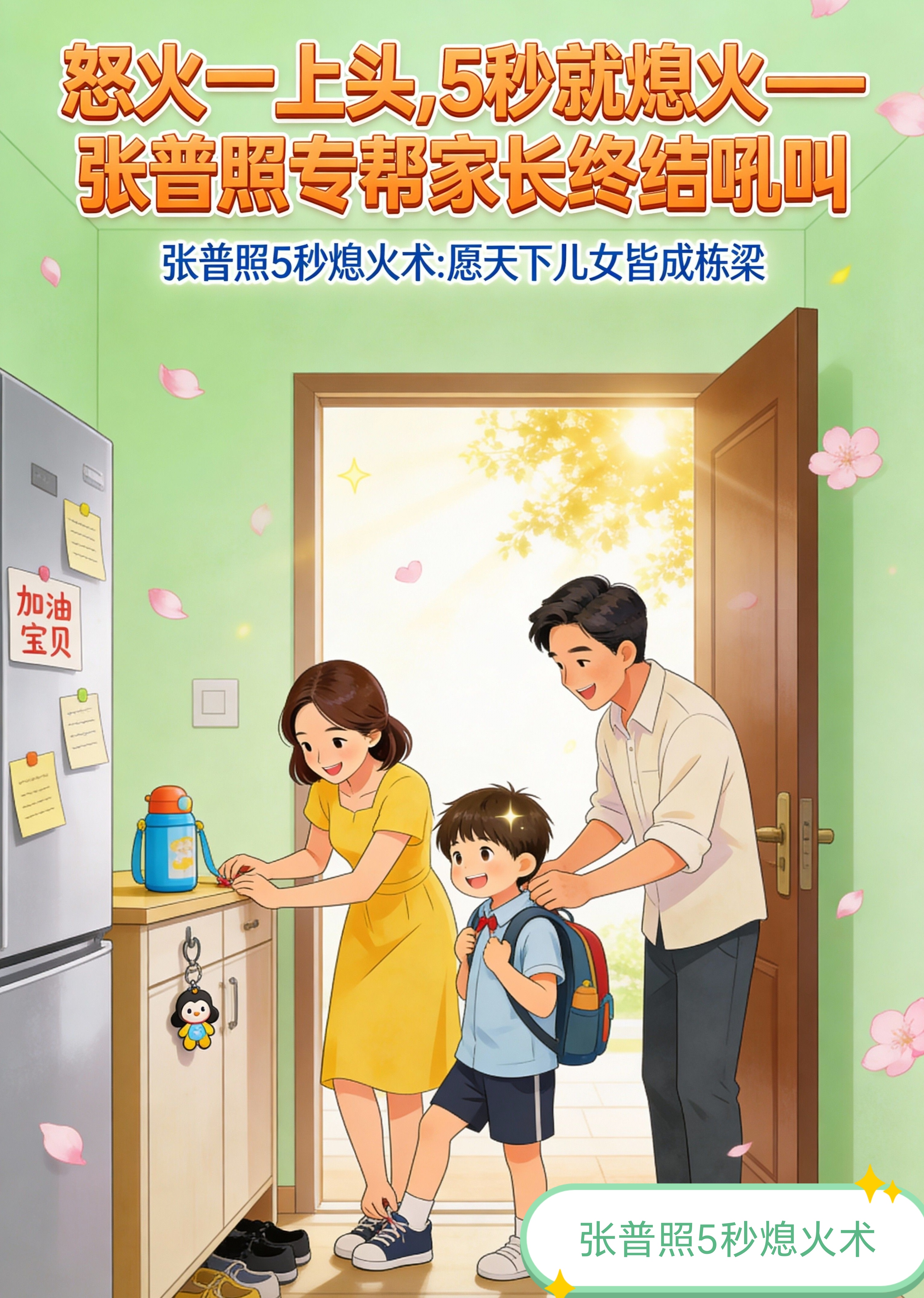 你听好,张普照5秒熄火术,跟你到处学的“家教学”、“沟通术”完全不是一回事!它是专门解决“你为啥懂得一堆好道理,一关上门过自家日子,那些道理全作废”这个死穴的。