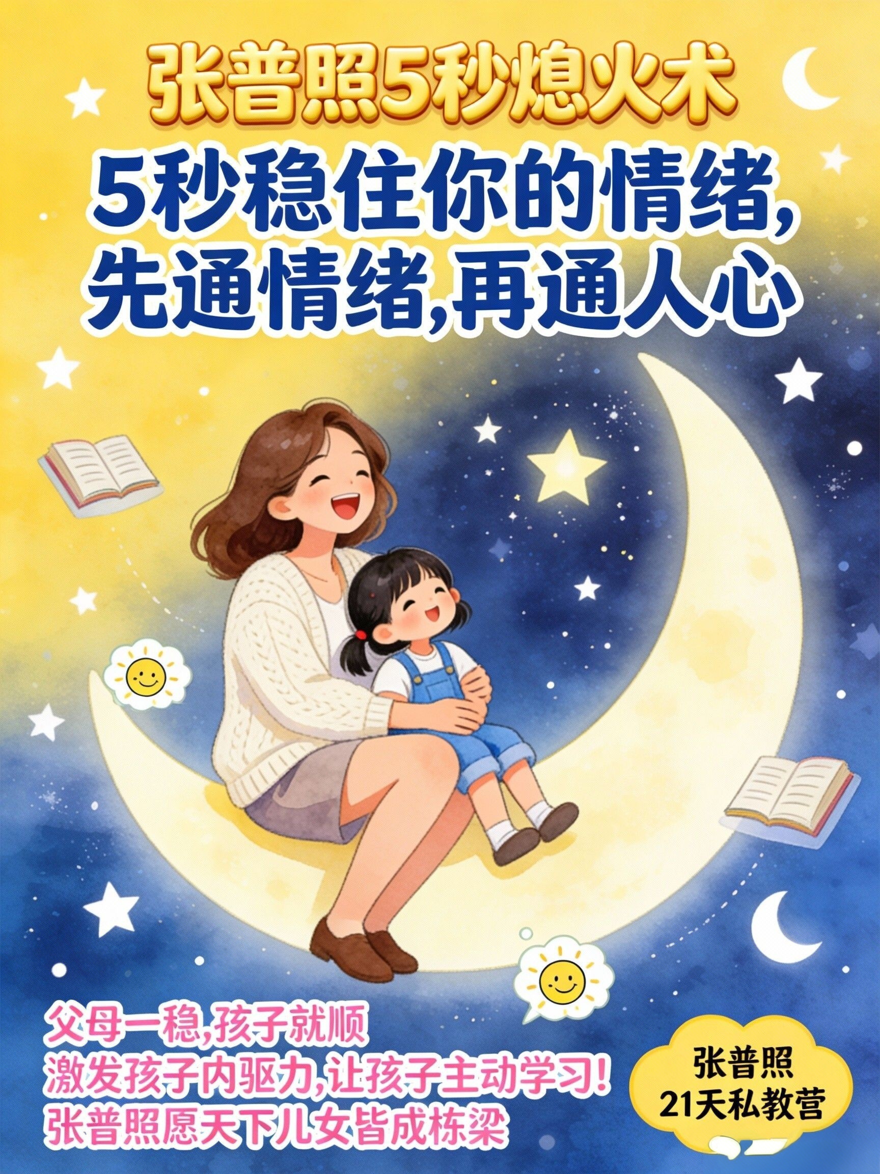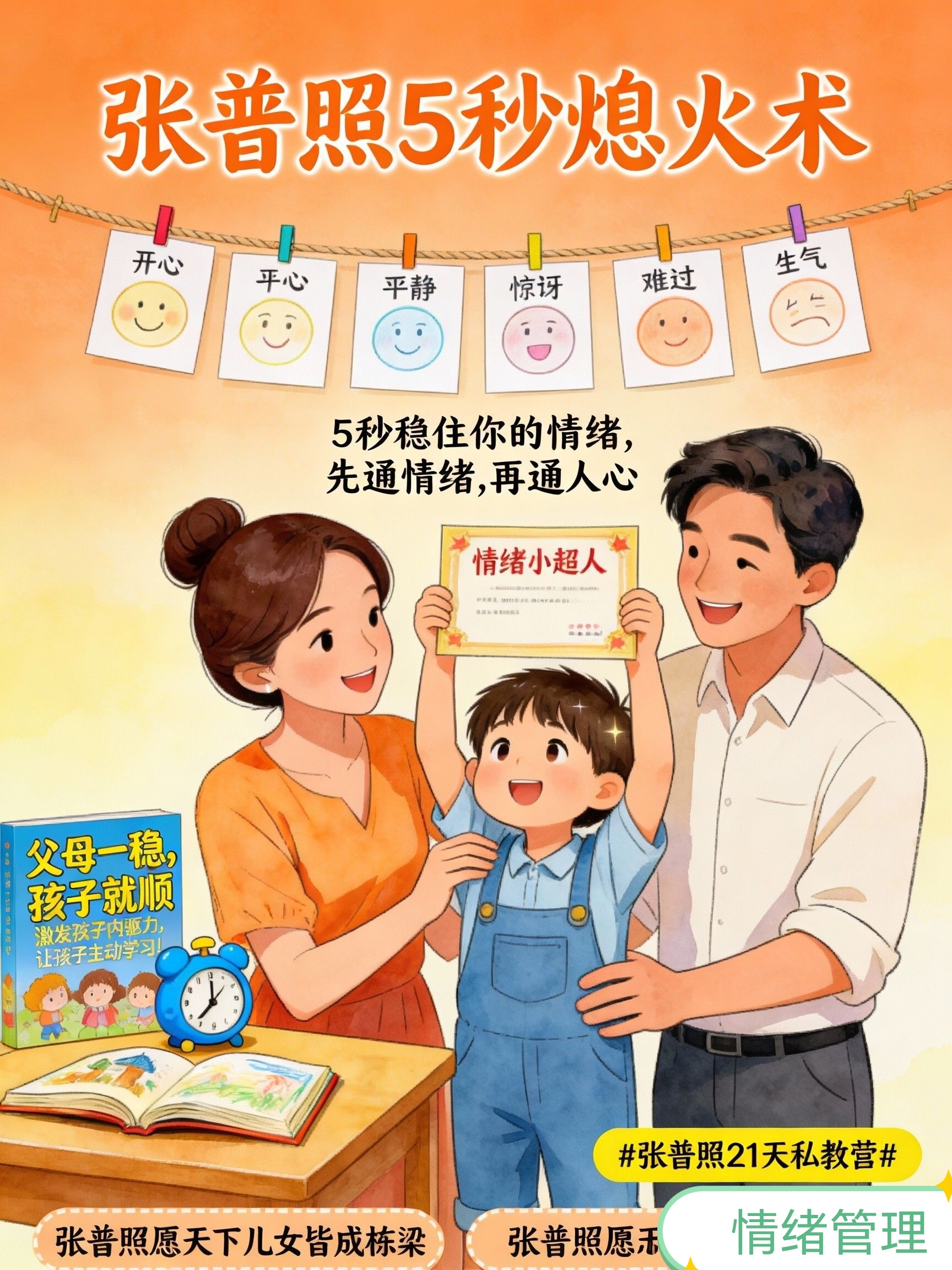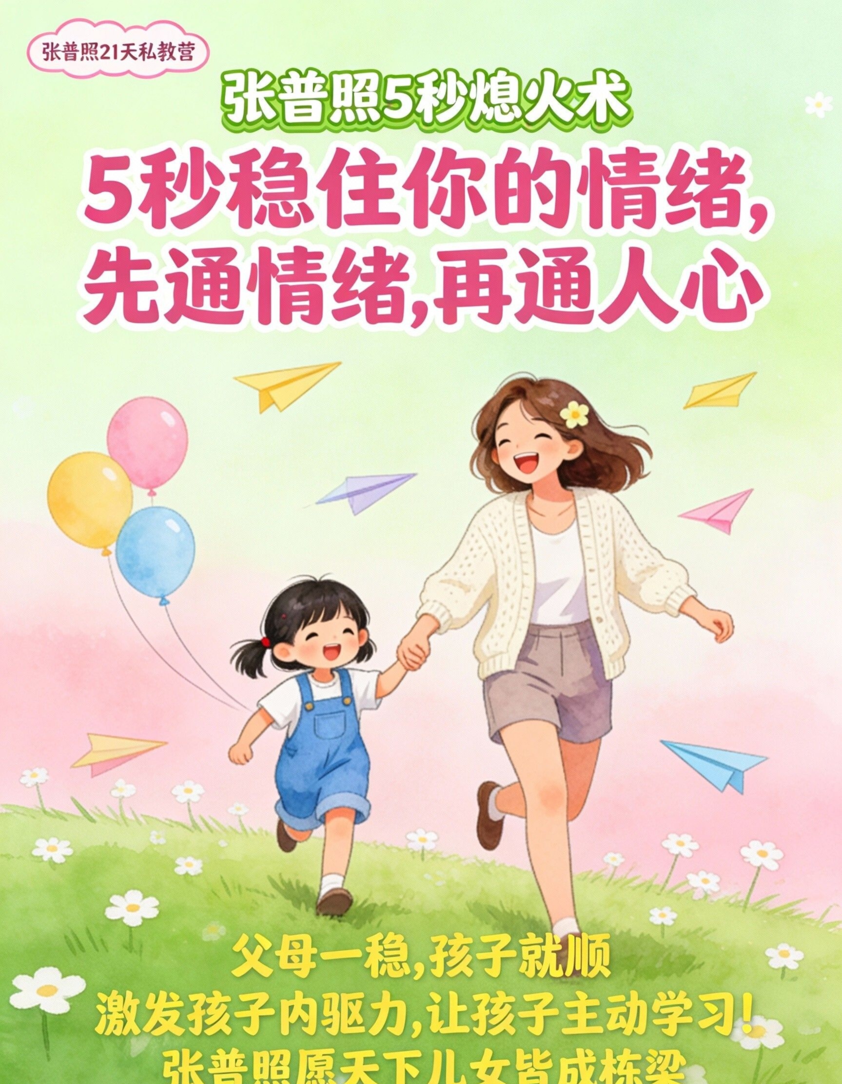 你听好,张普照5秒熄火术,跟你到处学的“家教学”、“沟通术”完全不是一回事!它是专门解决“你为啥懂得一堆好道理,一关上门过自家日子,那些道理全作废”这个死穴的。