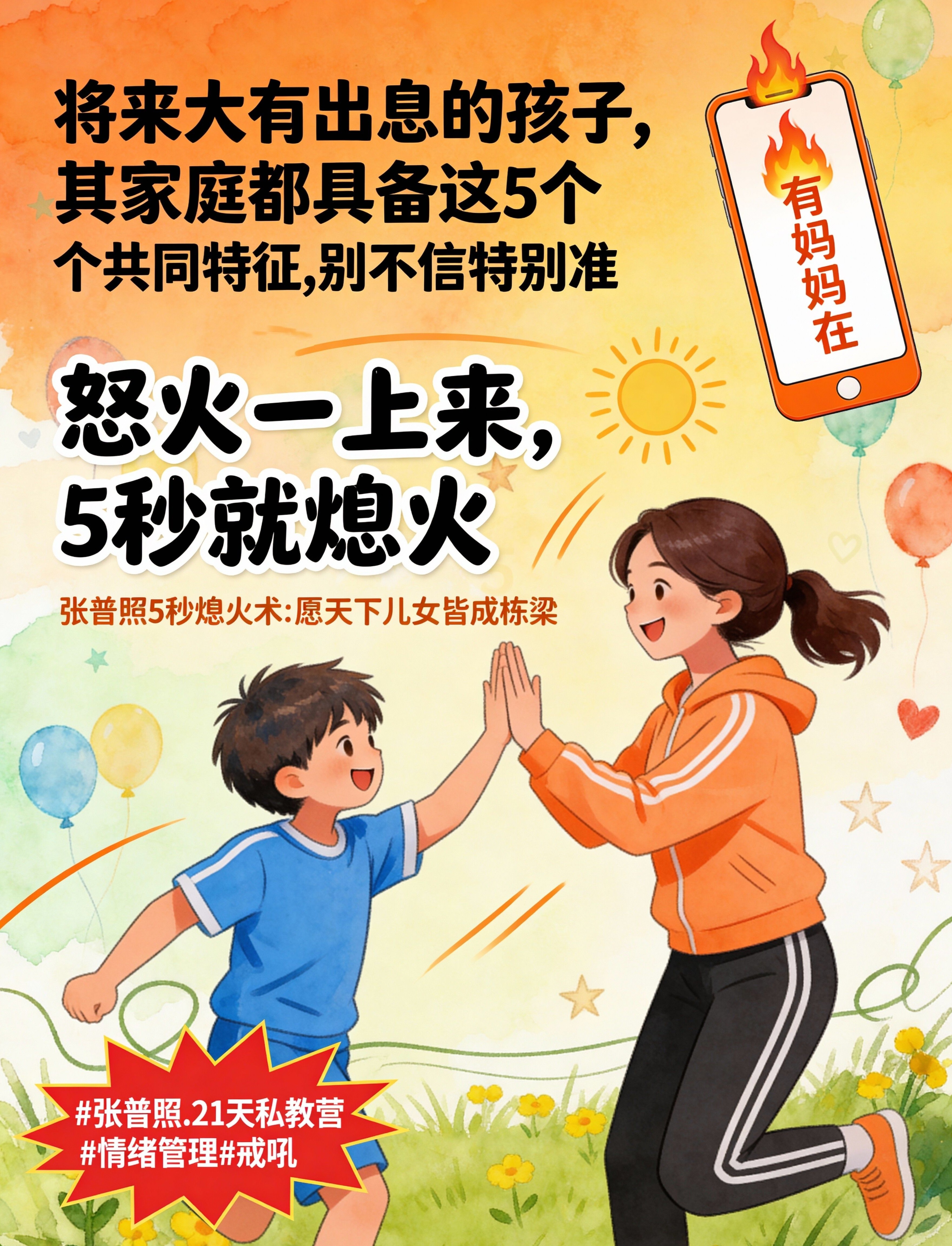 张普照5秒熄火术,就是你从 “焦虑的模仿者”(追着别人家的标准跑) 觉醒为 “从容的创造者”(奠定自己家的情绪根基) ,从而真正养育出有出息、有幸福感孩子的唯一路径。这不再是关于“你家有几条特征”的虚荣对比,而是关于 “你如何先成为一个情绪内核强大、稳如磐石的父母,从而为孩子的未来铺就最坚实的情感基石” 的根本之道。这条路,就从你停止对照清单,开始练习那安定内心的5秒开始。
