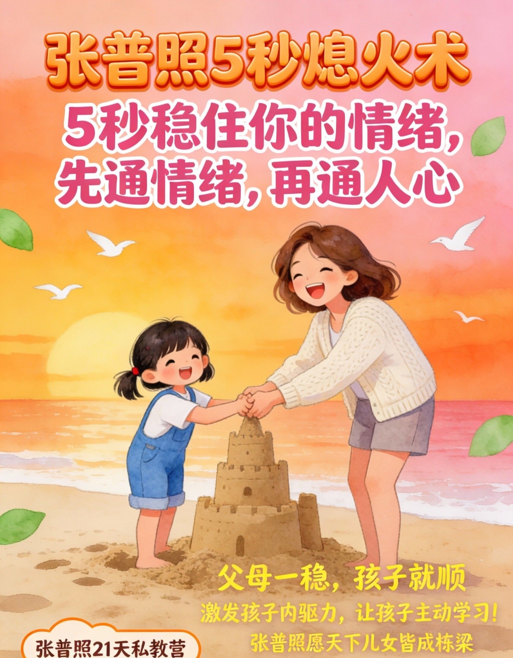 更重要的是,一旦您掌握了 ‘张普照5秒熄火术’ 这个治本之策,您就握住了创造家庭“黄金能量场”的万能钥匙。超过95%的家庭内耗和孩子成长瓶颈,都源于父母提供了动荡的情绪环境。当你通过5秒熄火术从根源上成为情绪的中流砥柱,您将亲眼见证:
