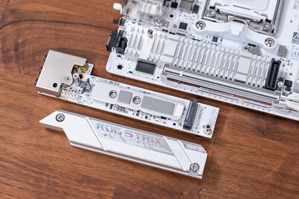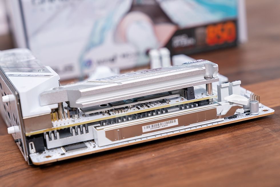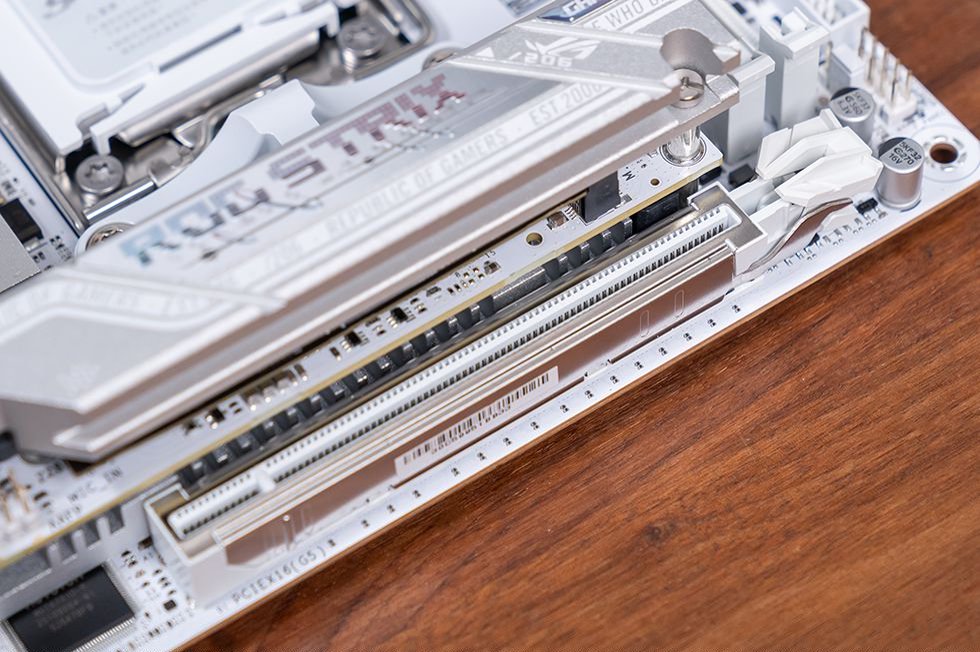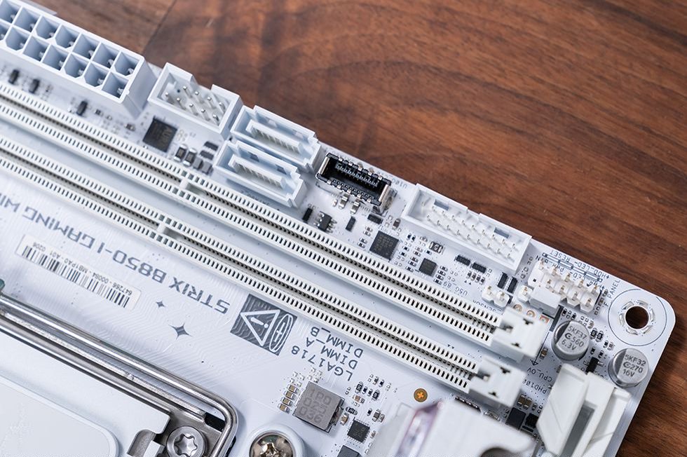 ROG STRIX B850-I GAMING WiFi7 W 主板提供 1 条 PCIe 5.0×16 处理器直出插槽,采用高强度金属加固设计,支持显卡快拆功能,以承受新款显卡的重量,兼容 RTX 5090 等旗舰显卡。理论带宽达 64GB/s,完全释放 PCIe 5.0 显卡性能。