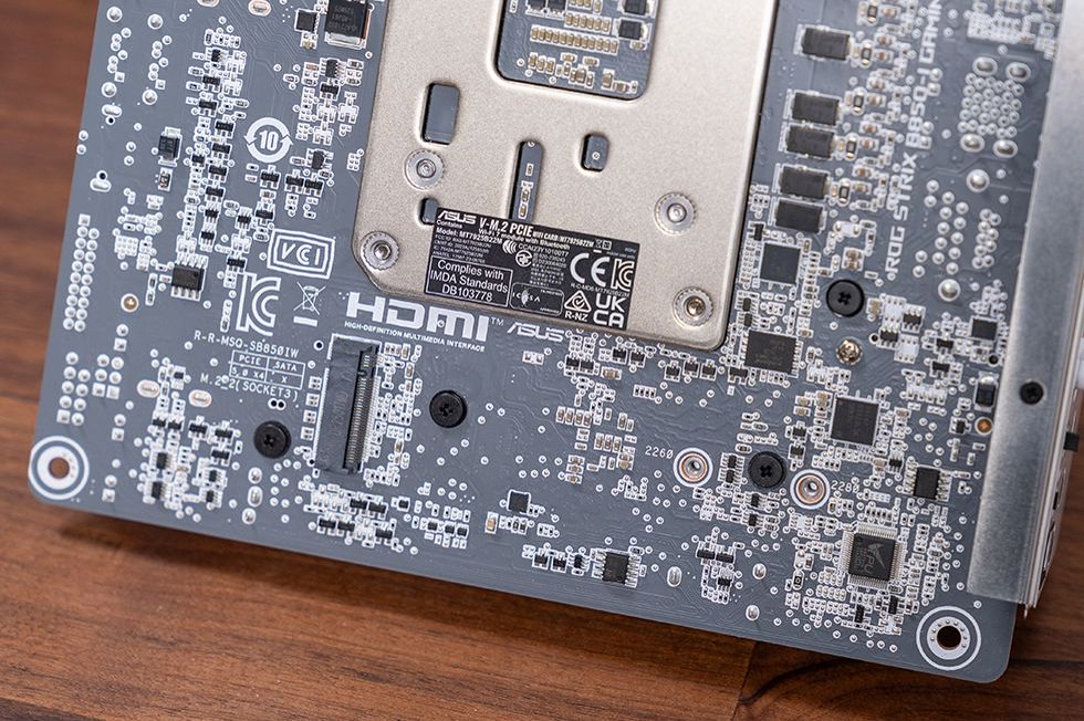主板背面无金属背板,但关键区域做了防弯加固处理,同时预留背部 M.2 插槽的散热空间,兼顾美观与实用性。