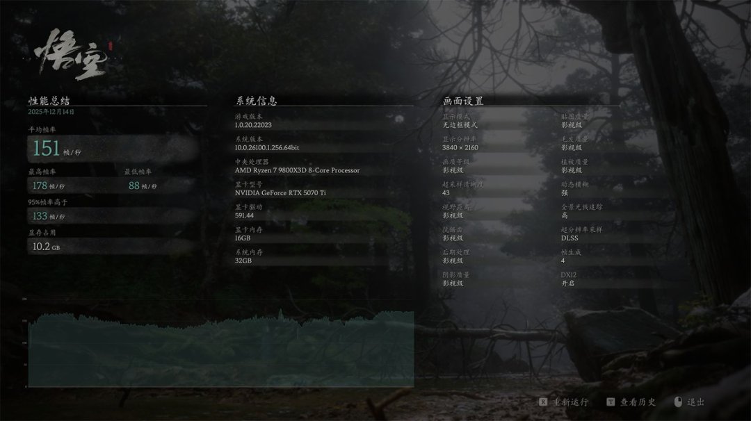 在游戏实战测试环节,选取3A大作《黑神话悟空》作为测试目标,将画面参数设定为 4K 分辨率 + 高画质预设。经实测,游戏平均帧率稳定在151 fps。高速内存与 PCIe 5.0 固态硬盘的组合,大幅缩短了游戏的场景加载与资源读取时间。同时,平台供电系统的稳定输出,有效避免了游戏高负载运行期间的帧率波动与性能掉档问题,为用户带来流畅且稳定的高规格游戏体验。