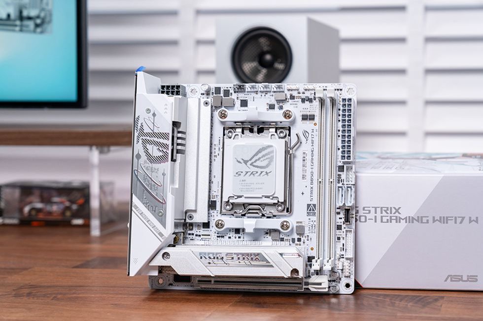 ROG STRIX B850-I GAMING WiFi7 W 将先进技术融入精巧时尚的 mini-ITX 版型之中。配备支持显卡与存储的 PCIe® 5.0 插槽、双通道 DDR5 插槽以及强劲的供电系统,从容应对高阶游戏体验与高强度工作负载。同时,优化的散热解决方案有助于维持出色的性能表现,WiFi 7 技术则带来高速流畅的连接体验。其定位覆盖高端游戏玩家与内容创作者,既满足迷你主机的便携需求,又提供旗舰级的性能释放与扩展能力。
