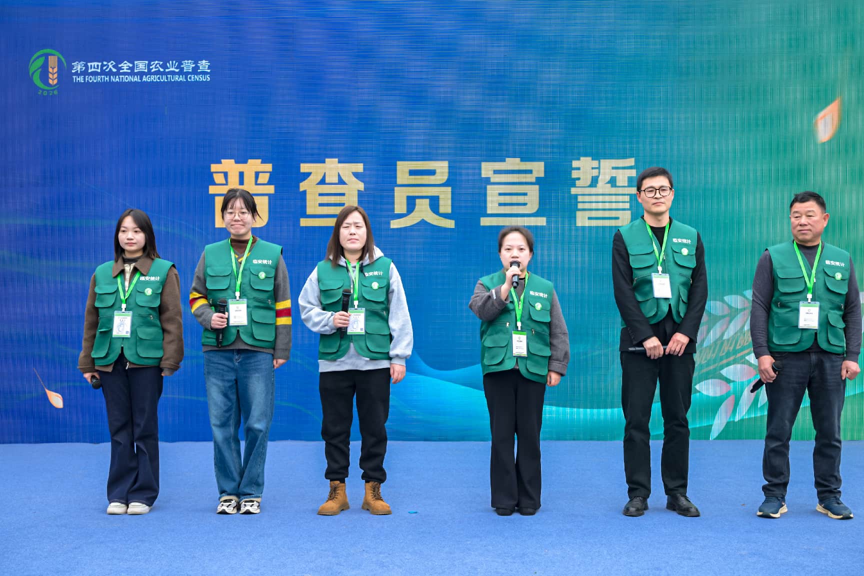 仪式现场,随着启动装置开启,杭州市第四次全国农业普查综合试点工作全面启动。普查员代表庄严宣誓,表达了依法普查,服务三农的坚定决心。同时浙江农林大学与临安区统计局校地共建实践基地正式揭牌,“学生技术员+村级引导员”的创新模式同步亮相,不仅打通了专业技术与基层实际的通道,也为普查高效有序开展注入青春力量与智力支撑。